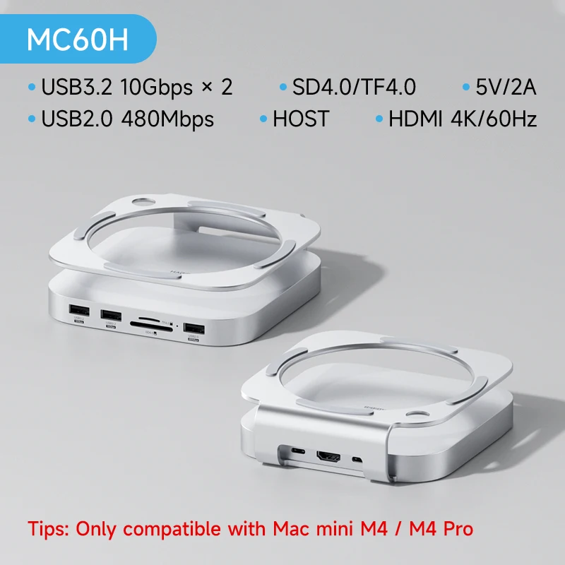 맥 미니 M4/M4 프로에 대 한 좋은 파트너 Hub에는 여러 요구를 충족시키는 여러 인터페이스가 동일한 합금 소재 플러그 앤 플레이 가볍고 견고하며 빠른 방열 Mac ni M4/M4 에 더