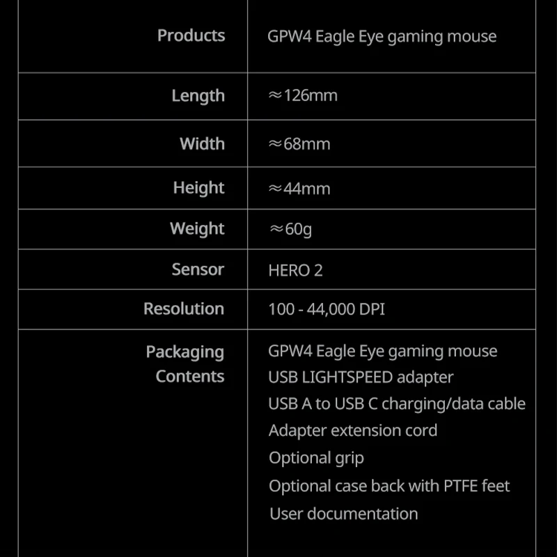 | 센서 모델 | Logitech 영웅 25K (25600 인치 당 점 | 400 IPS | 40G) |