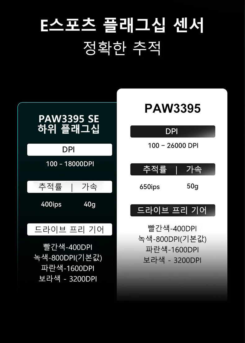 | 센서 모델 | Pixart 3395 (26000 인치 당 점 | 650 IPS | 50G) |