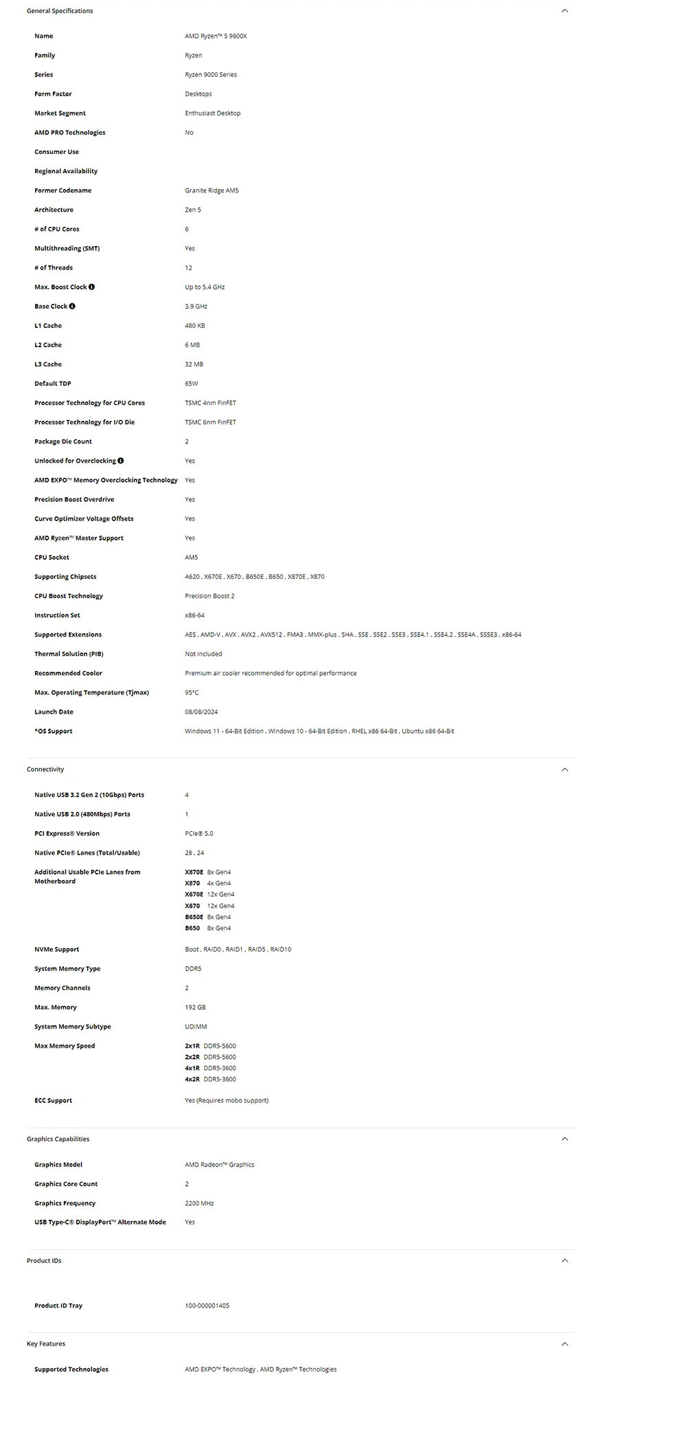 | AMD 모델 | AMD Ryzen 5 9600X |