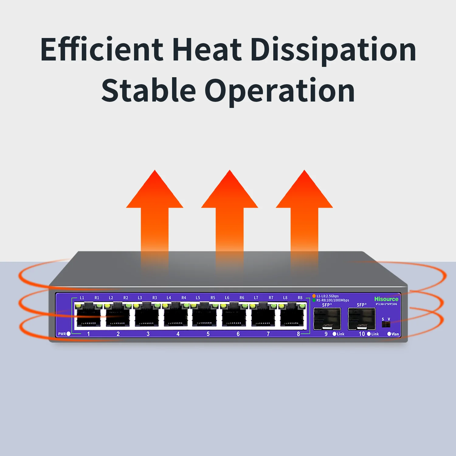 이더넷 일반 스위치를 Hi K0802WS 제품은 8 2 5G 포트 2 10Gb SFP 광 포트를 제공하며 2 5G 장치의 각 유형에 연결 직접 2 5G 고속 전송 저장 및 전달 메커니즘의 사용 고용량 캐시의 내부 통합 데이터 전달 지연을 효과적으로 줄입니다 모든 포트는 비 차단 라인 속도 전달을 달성 표준 작업 모드 및 좌현 격리 작업 모드 지원