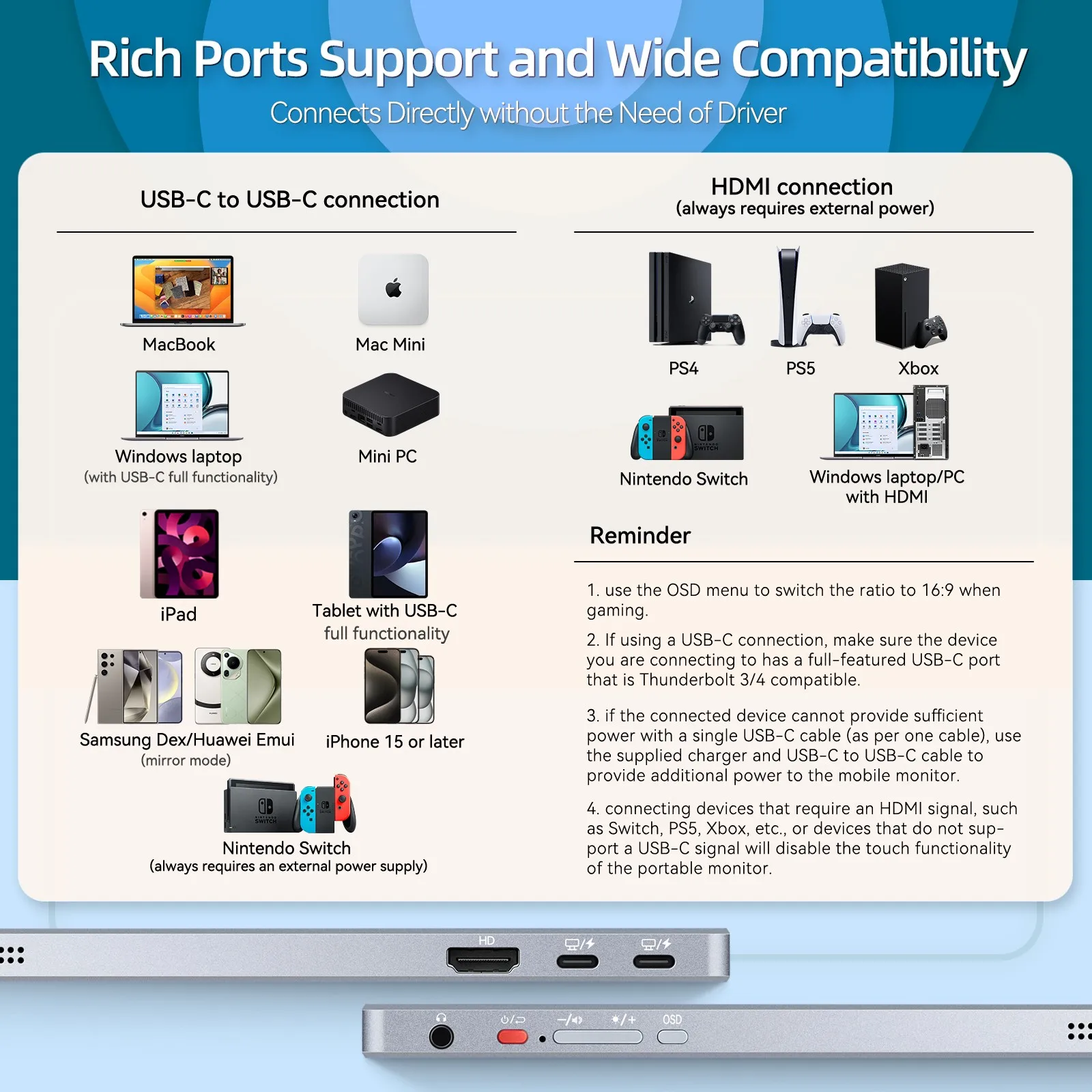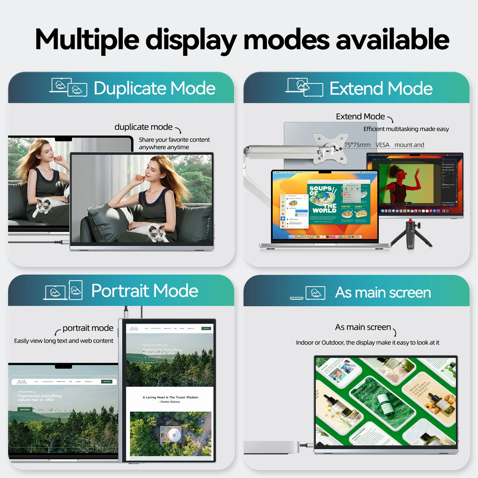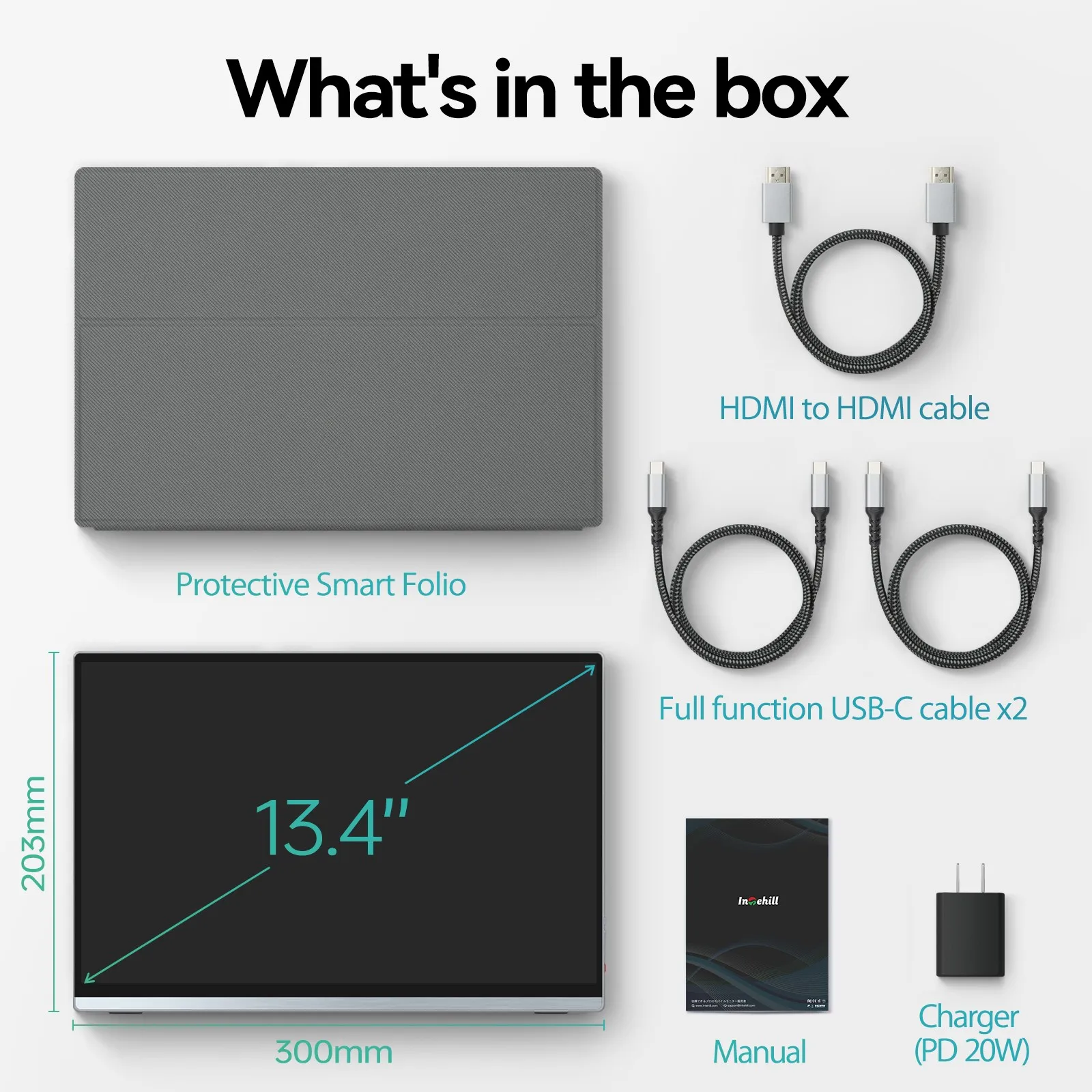 Intehill 13 4 인치 4K 터치 스크린 휴대용 모니터 3840 2400 500 니트 sRGB U13ZT /5 스위치 노트북 PC 확장