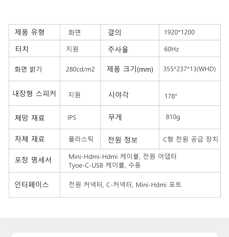| 인터페이스 유형 | TYPE-C |