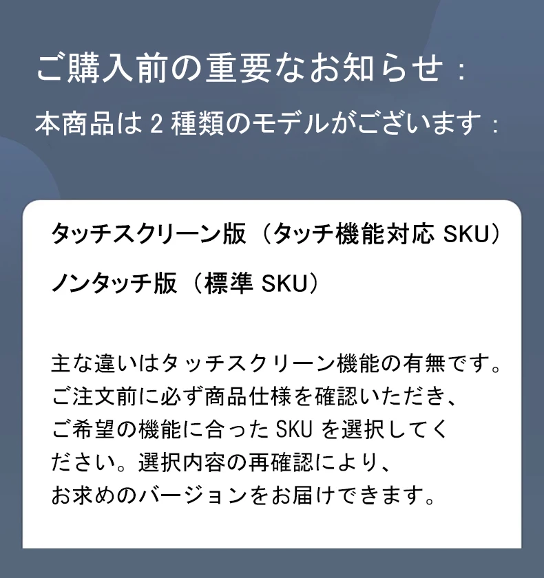 답변 이 제품은 터치 버전과 터치 미지원 버전 두 가지 모델이 터치 버전과 터치 미지원 버전에는 차이가 잘못된 모델을 하지 않도록 필요에 따라 해당 모델을 선택하여 주문해 주세요