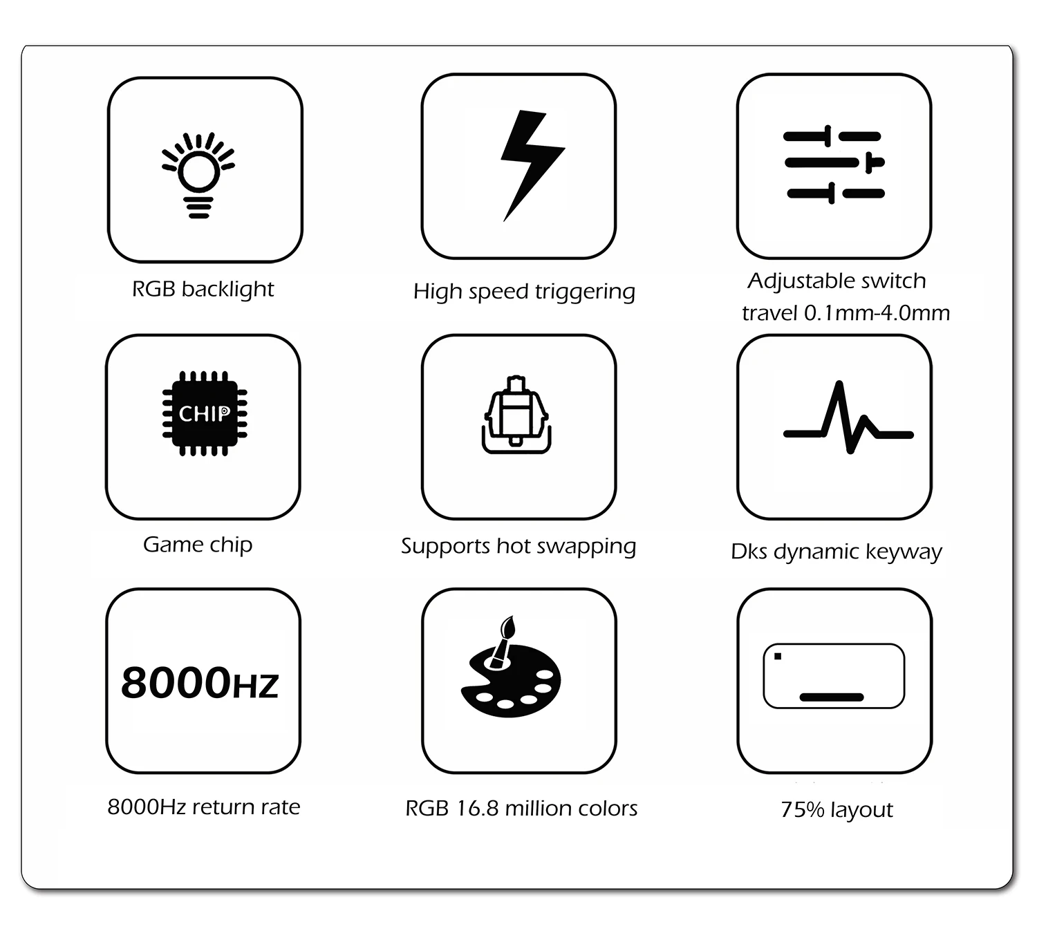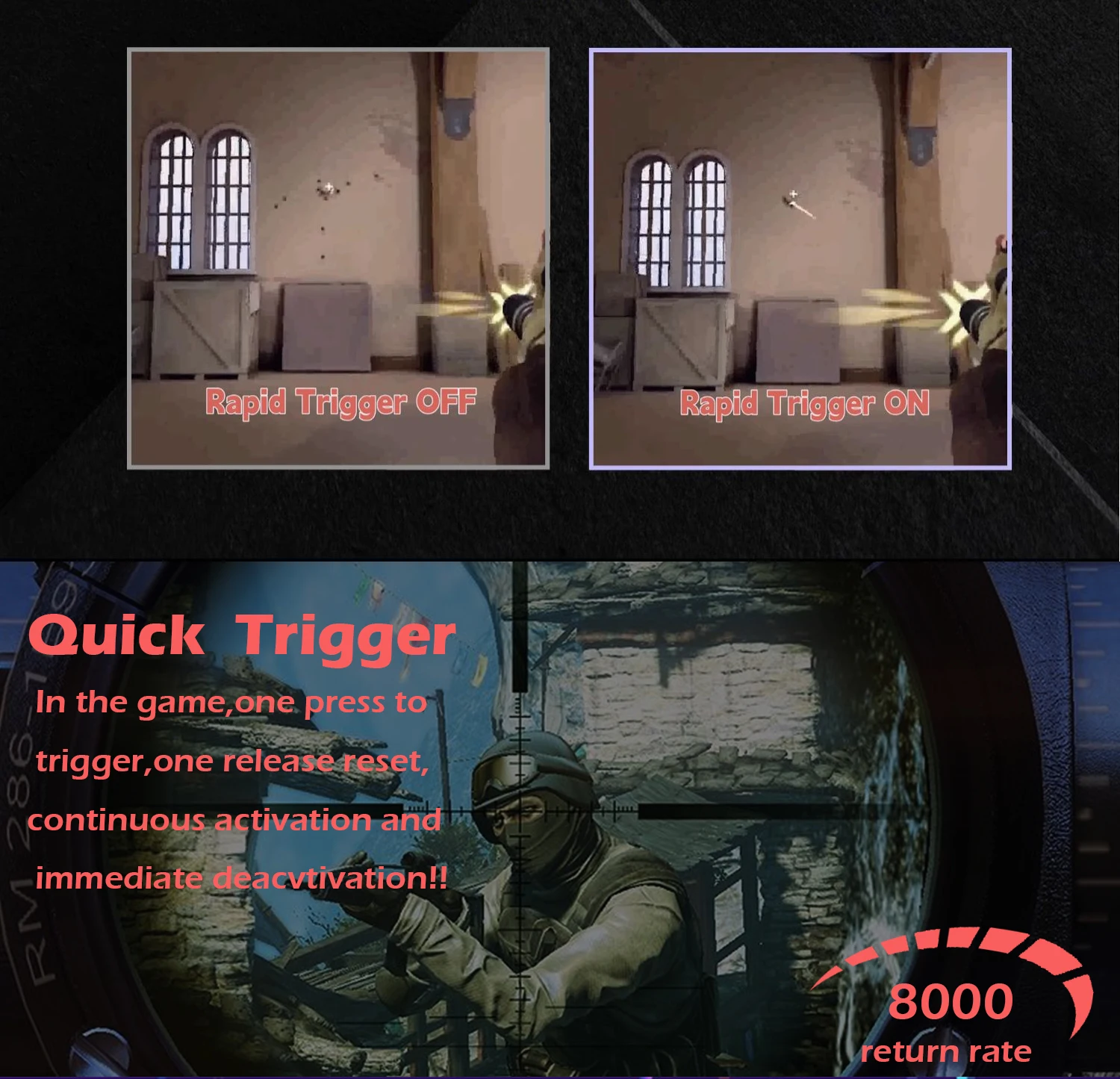 R en68 핫 스왑 가능 유선 자기 축 기계식 키보드 8K 복귀 속도 키 범위 전자 스포츠 게임 키보드(유선 8K 복귀 속도 평균 지연 1ms) 축 기능 구현 필요 RT(신속 ) 기능 정의(간격 0 1mm 40개 세그먼트 0 이내의 데드존 평균 1mm)
