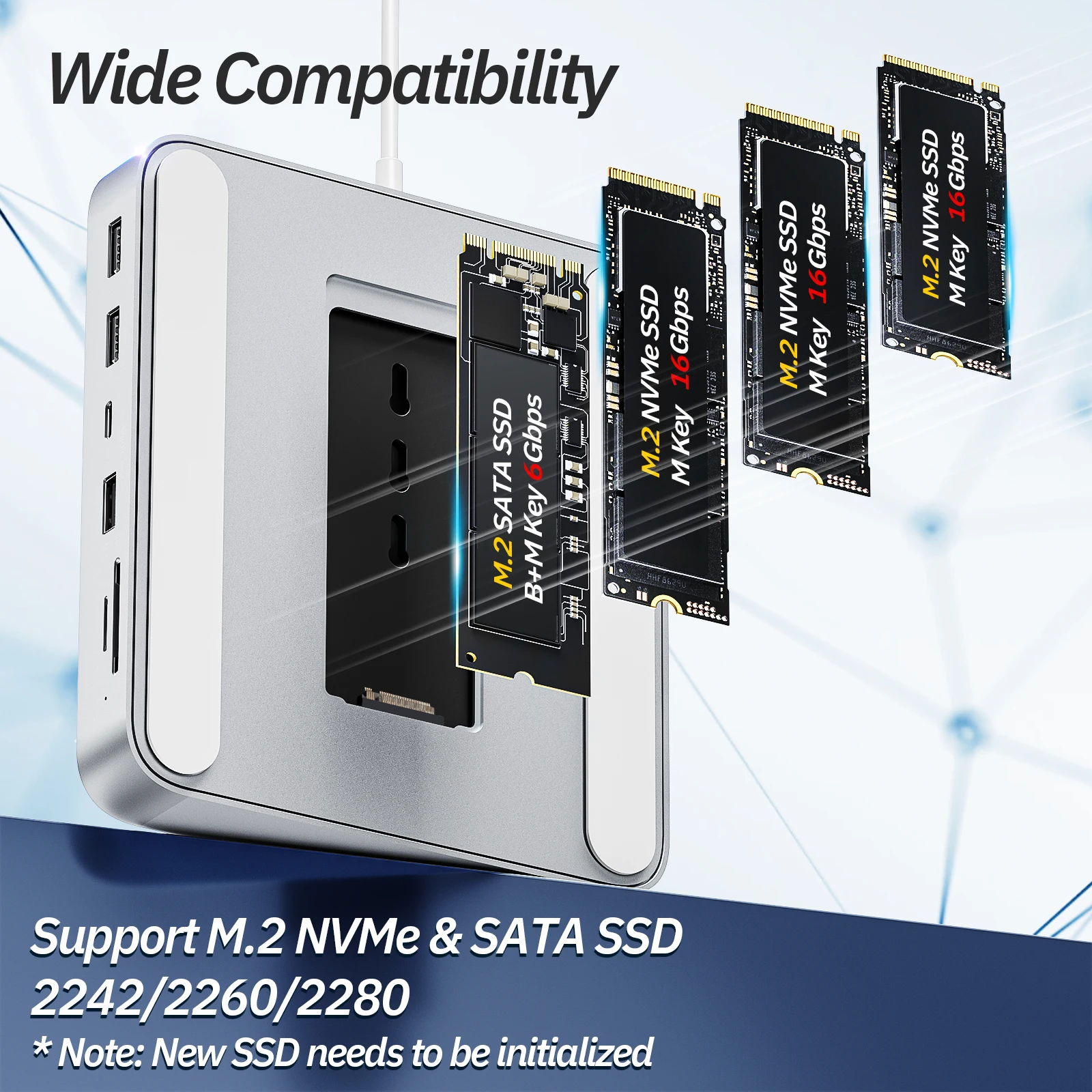 M 2 SSD 지원 다기능 iMac 액세서리는 고속 SSD(포함되지 않음)를 지원하여 iMac 24의 저장 공간을 확장하여 다양한 요구 사항을 충족 USB c 허브 멀티포트 어댑터는 M 2 SSD 또는 M 2 SATA SSD 10Gbps를 지원 SSD는 설치가 쉽고 iMac 어댑터 외부 솔리드 스테이트 인클로저 어댑터는 2242/2260/2280 M 2 SSD(최대 2TB)를 지원