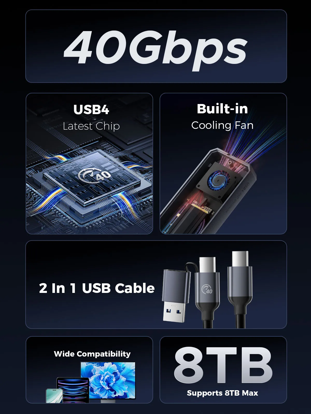 | Compatibility | For Thunderbolt 3/4 USB3.2/3.1/3.0 |