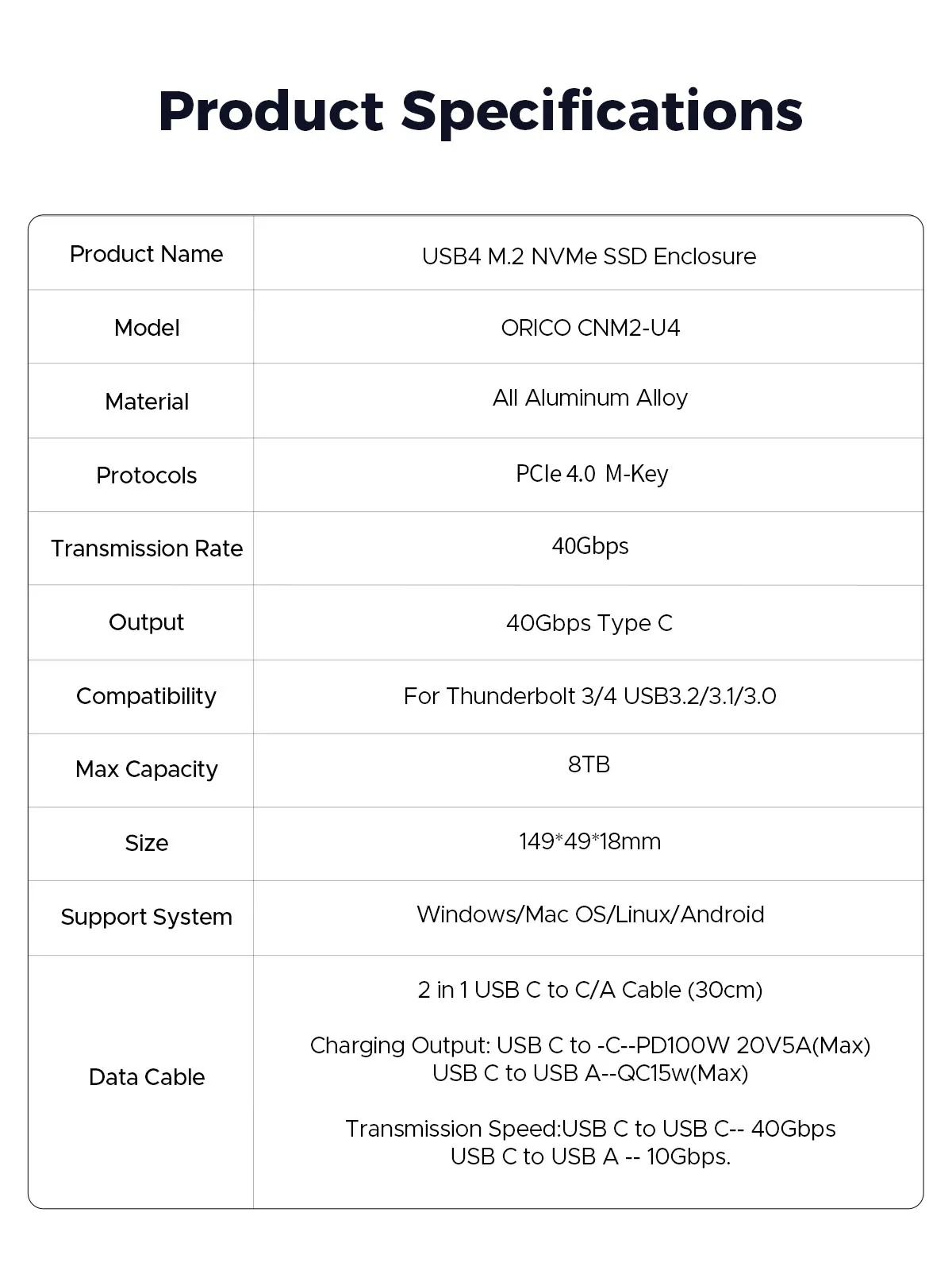 | Item | USB4 M.2 NVMe SSD Enclosure |