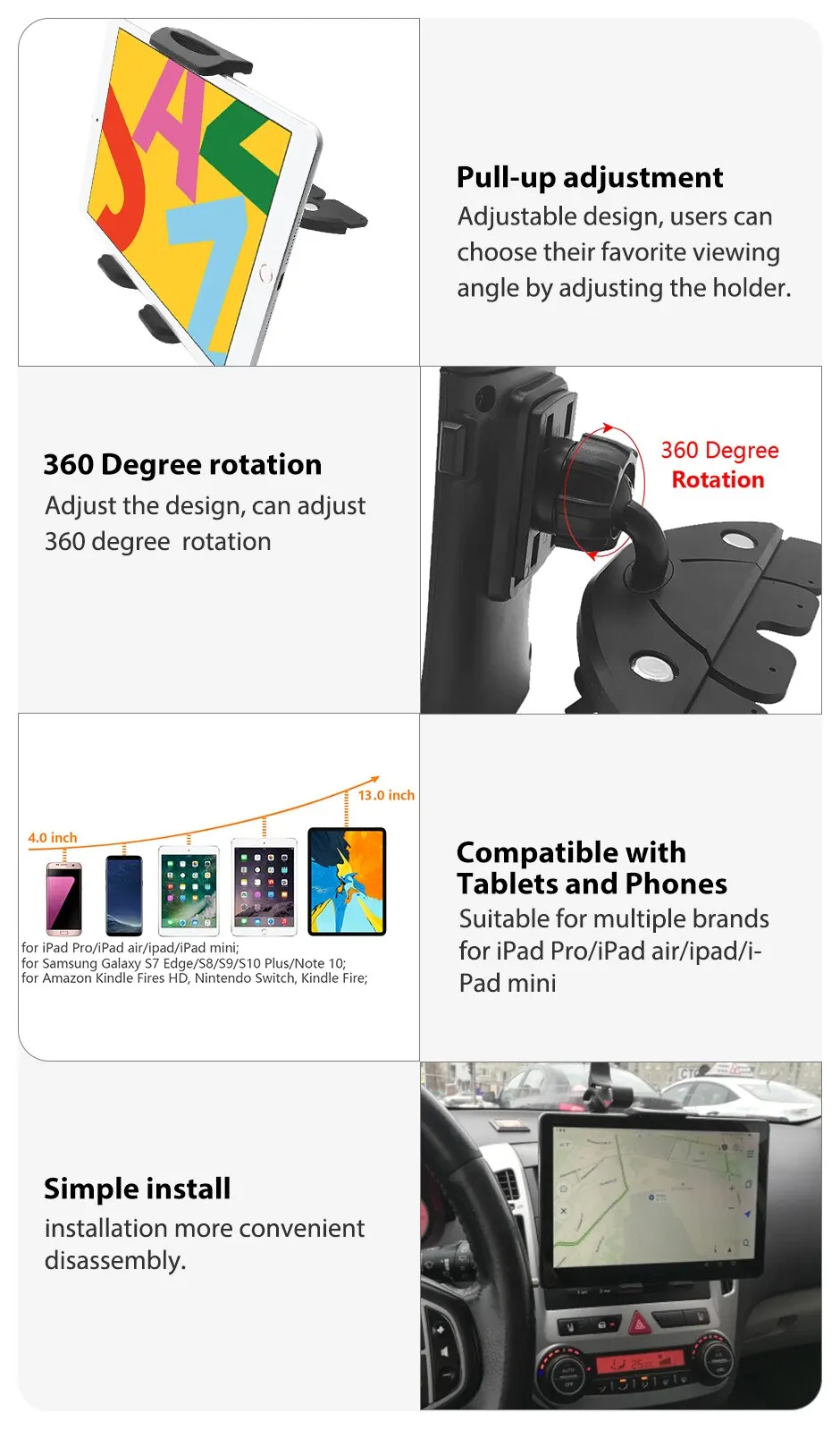 ? 조정 가능한 디자인 X ocn 자동차 CD 슬롯 태블릿 스탠드 폰 홀더는 조정 가능한 디자인으로 또는 패드이든 기기의 완벽한 각도를 찾을 수