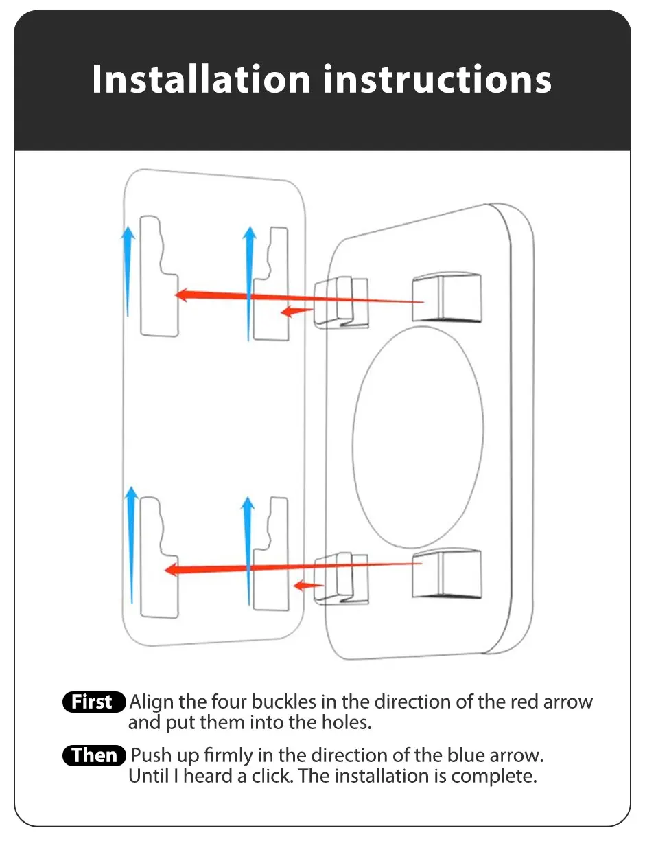 첫째 네 버클을 빨간색 화살표 방향으로 정렬하고 구멍에 넣습니다