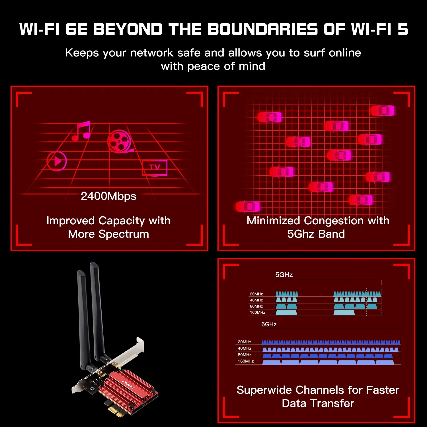 FENVI Wi Fi 6E AX210 5374Mbps 트라이 밴드 2 4G/5G/6Ghz 무선 PCI E 어댑터 호환 블루투스 5 3 네트워크 WiFi 카드 PC Win10/11