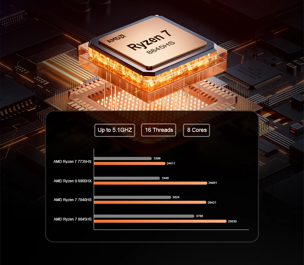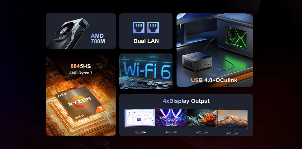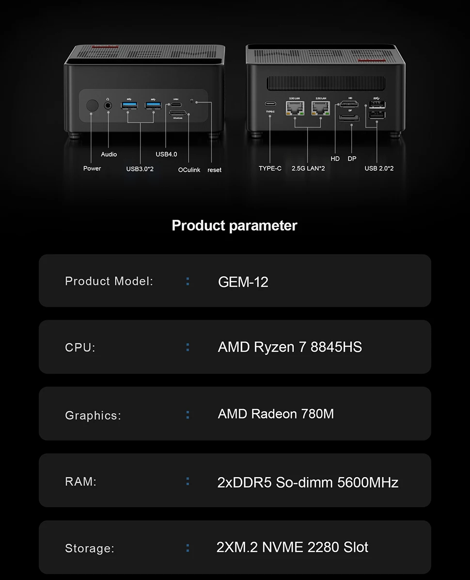 Chatreey GEM 미니 PC R7 8845HS 7840HS 780M R9 6900HX 680M 게임용 데스크탑 컴퓨터(WiFi 6/블루투스 5
