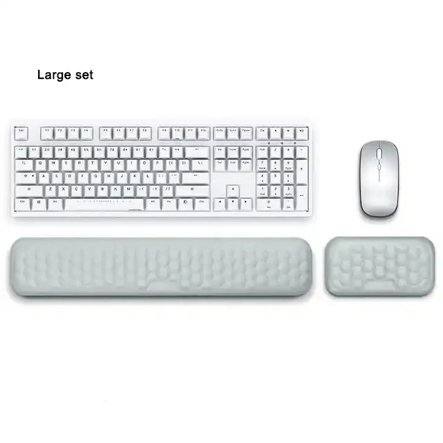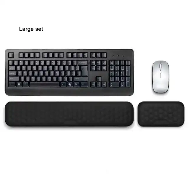 [뛰어난 편안함과 지지력]키보드 손목 받침대 2 in 1 메모리 폼 손목 받침대 세트에는 메모리 폼 쿠션으로 제작된 키보드 및 마우스 손목 받침대가 포함되어 이러한 인체공학적 디자인은 팔을 탁월하게 지지해 주고 손목 에 도움을 주며 장시간 컴퓨터를 사용하는 동안에도 손과 손목 를 개선해 줍니다