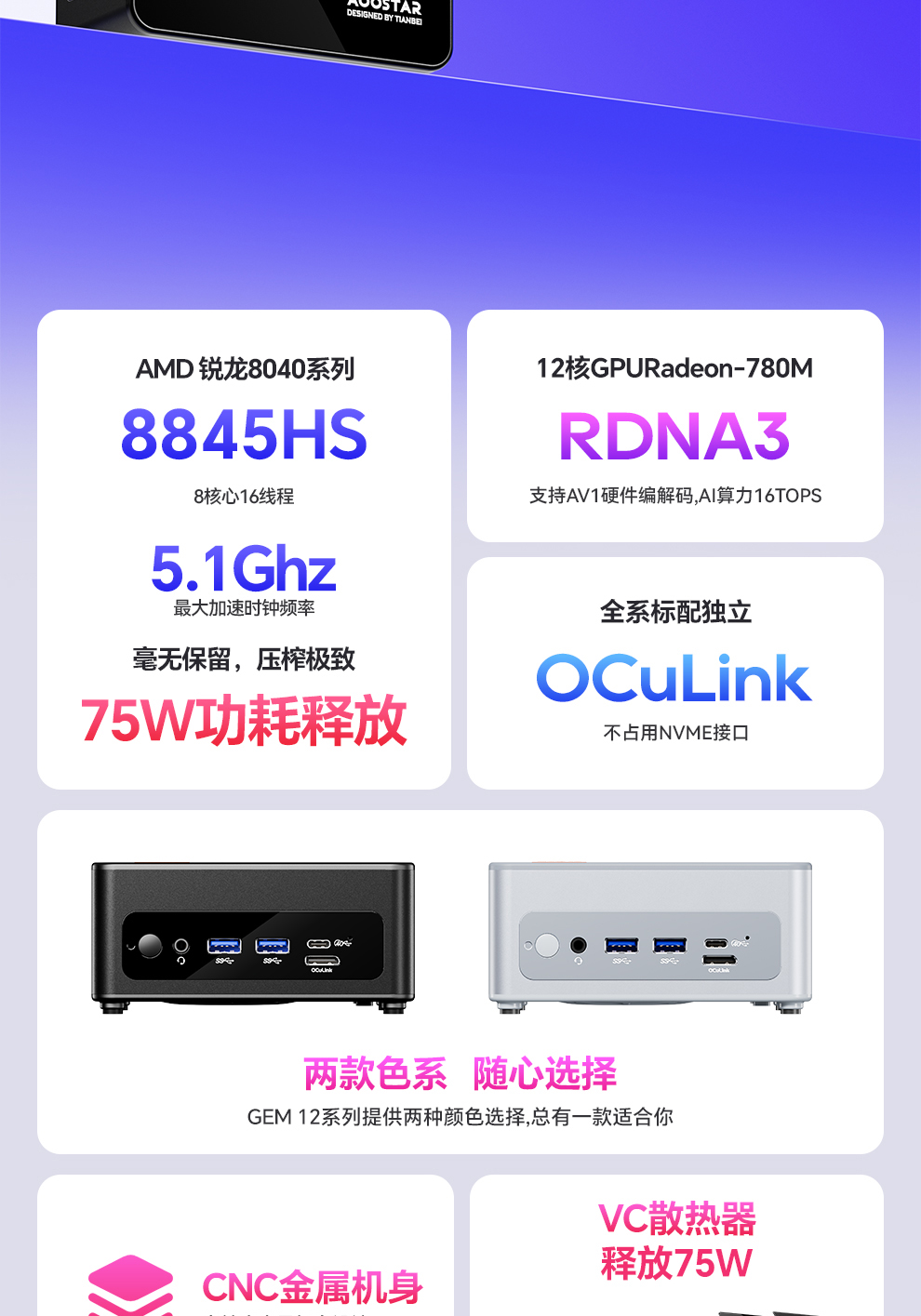 패키지 타입 : GEM12 MAX R7 8845HS 포트 전원공급 듀얼 USB4포트 ![]() |