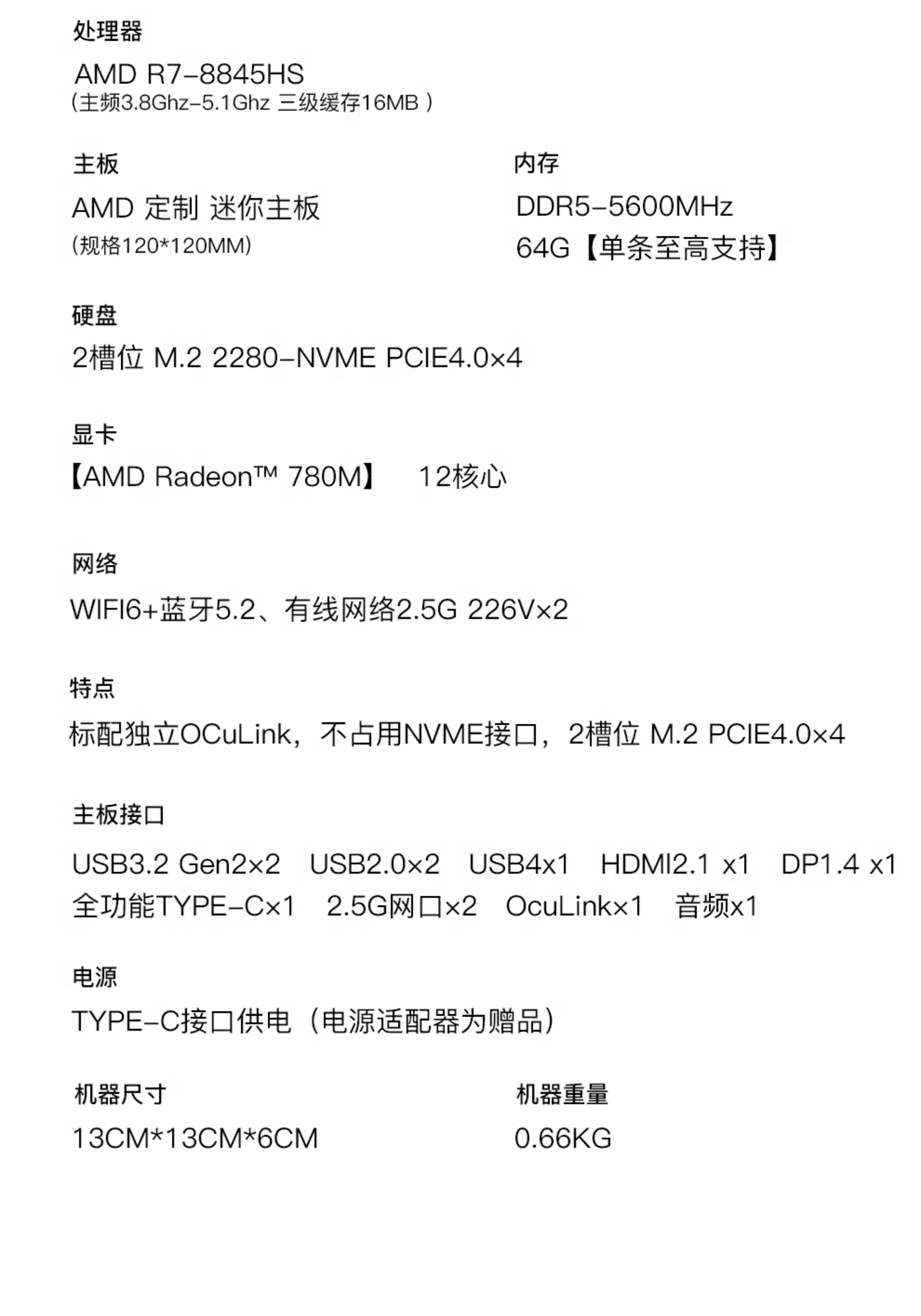 패키지 타입 : GEM12 R7 8845HS C포트 전원 공급 장치 USB4 포트 ![]() |