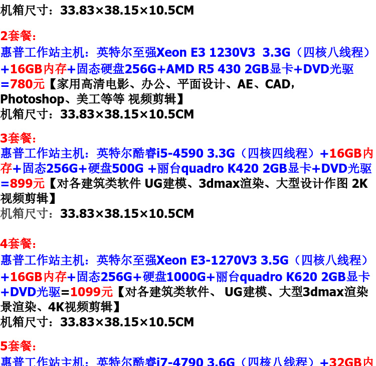 | 패키지 타입 | 패키지1 i5 4570/8GB 메모리/256G 솔리드 스테이트 드라이브+WIFI【성능 풀오픈 매끄러운 내구】 패키지2 E31230V3/16GB 메모리/256G 솔리드 스테이트 드라이브+독립 그래픽 카드R5430 2GB+WIFI 패키지3 i54590/16GB 메모리/256G 솔리드 스테이트 드라이브+500G 기계 하드 드라이브+독립 그래픽 카드K420 2GB+WIFI 패키지41270V3/16GB 메모리/256G 솔리드 스테이트 드라이브+1000G+독립 그래픽 카드7202GB/2GB/2GB/2GB720KIFI 패키지470V |