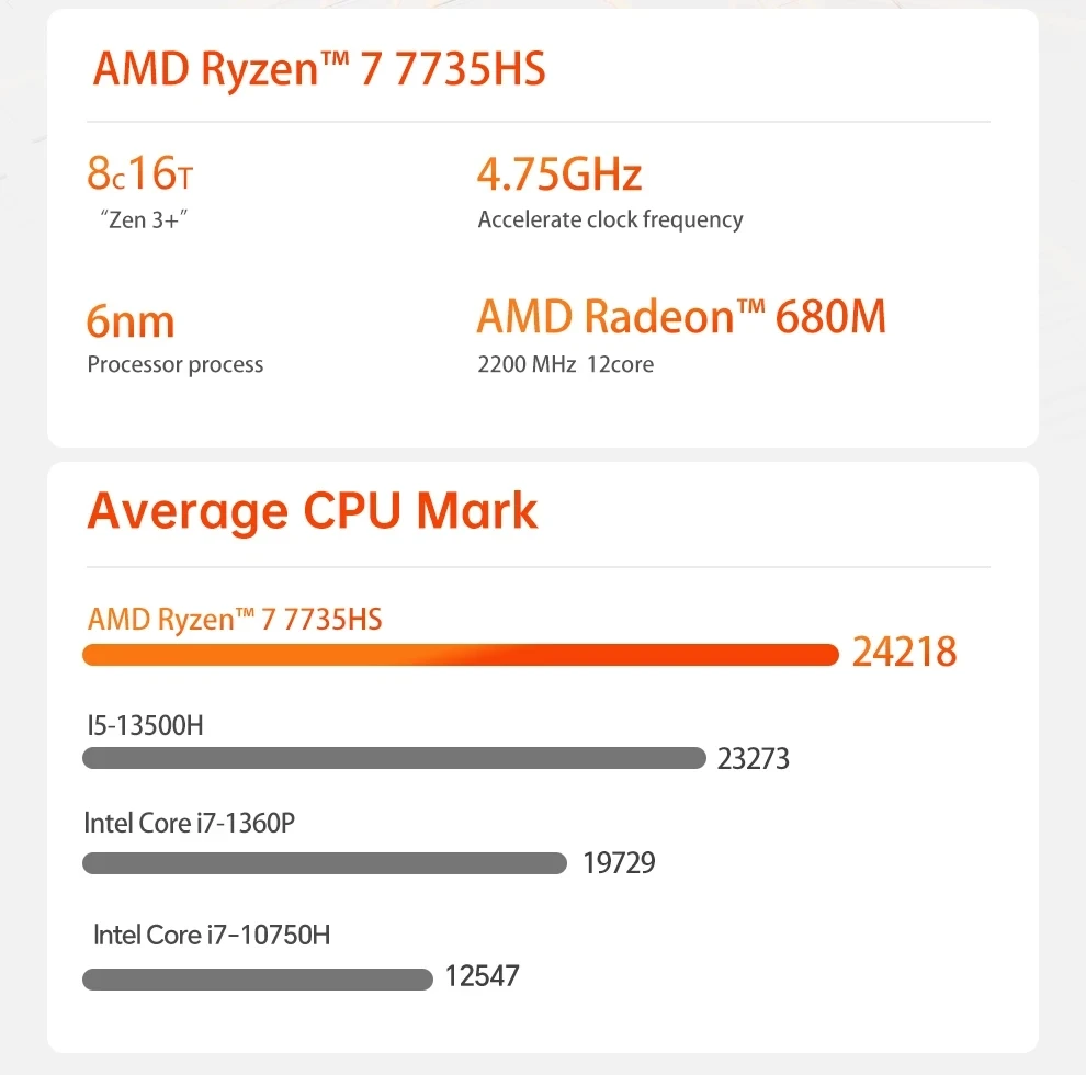 프로세서 모델AMD Ryzen 7 7735HS/7840HS