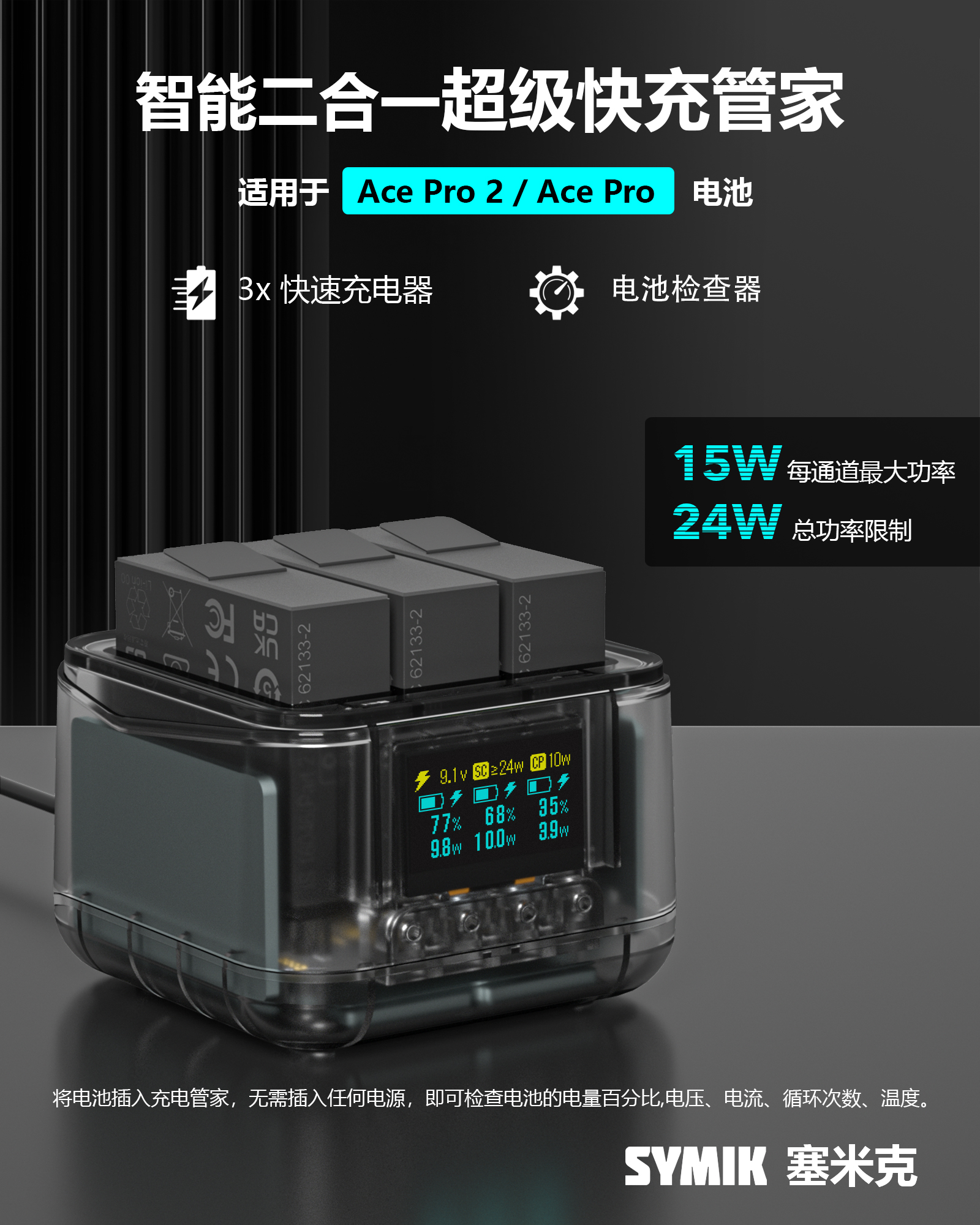 색상 분류 : 1 에이스프로2 화이트 고성능 배터리 1매 ![]() | 색상 분류 : 2 시믹 에이스 프로2 스마트 급속 충전 ![]() | 색상 분류 : 3 시믹 에이스 프로2 스마트 퀵 충전 에이스 프로2 화이트 고성능 배터리 1매 ![]() |