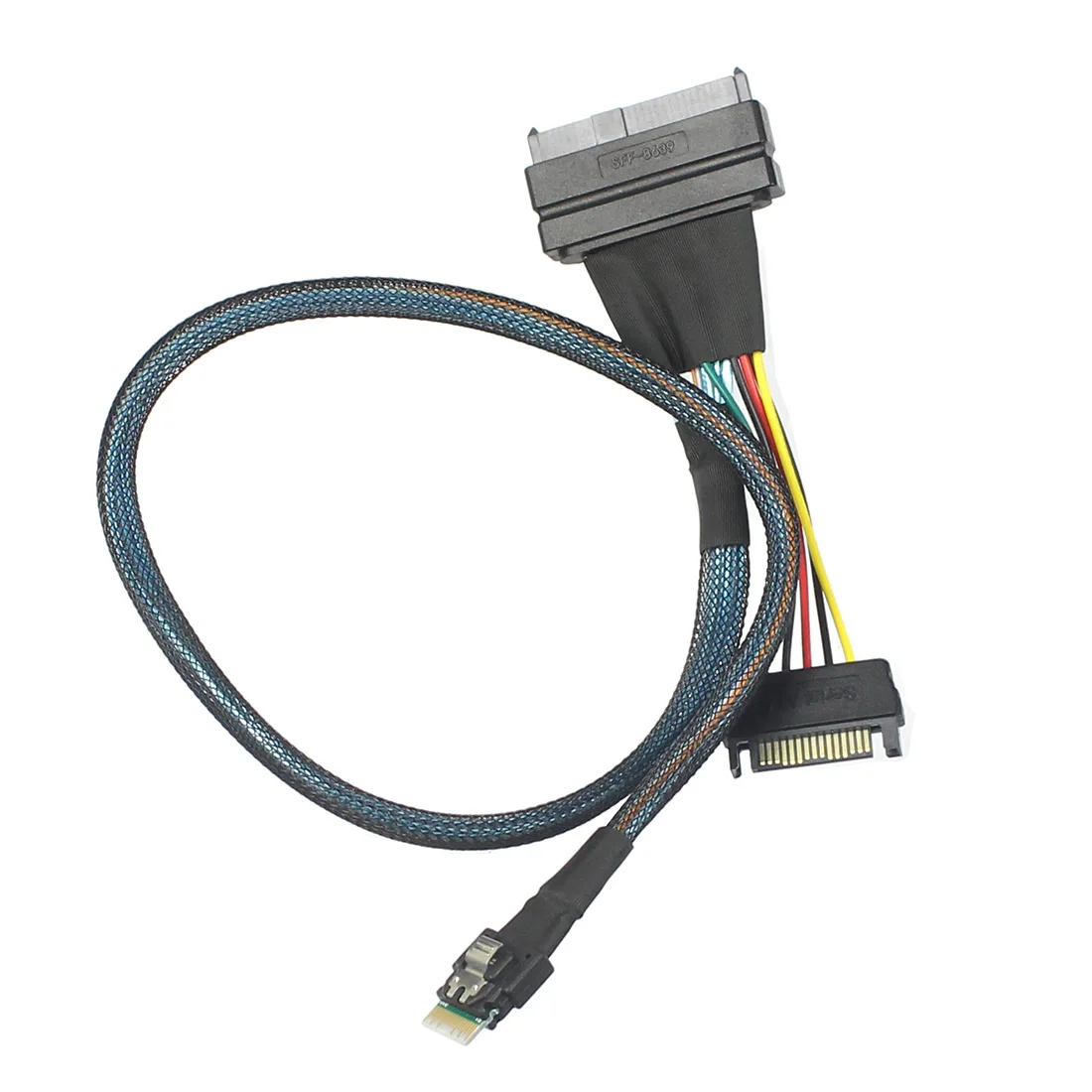 이 케이블은 SFF8639 커넥터가있는 장치와 같은 내부 장치를 Slimline SFF8654 4i 커넥터가있는 컨트롤러에 연결하는 데 사용할 수 있습니다.