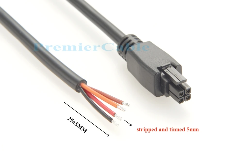 전기 간섭 없이 주석 도금 끝 피그테일 케이블 하니스에 주조된 차폐 및 4핀.
