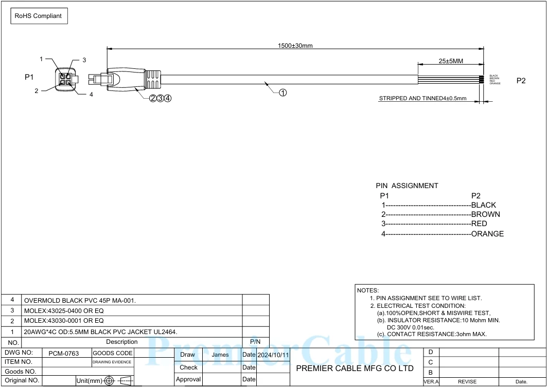 | Wire Gauge | 20AWG(standard tin-coating copper wire) |