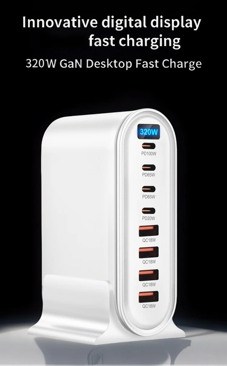 320W GaN 데스크탑 충전기 디스플레이 PD 충전기 다기능 데스크탑 어댑터