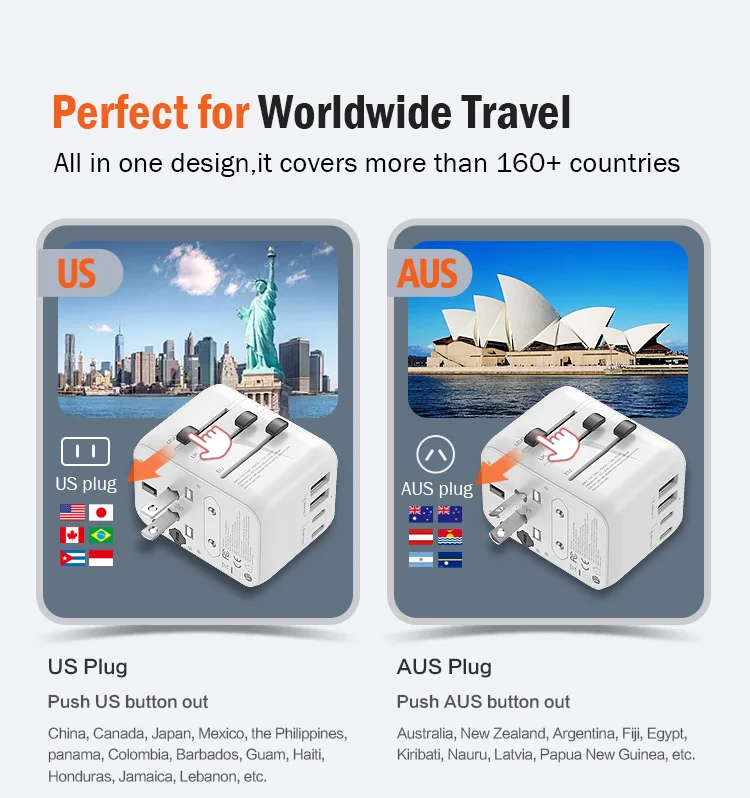 | Product name | worldwide adapter plug fit for 150 countries universal travel adapter |