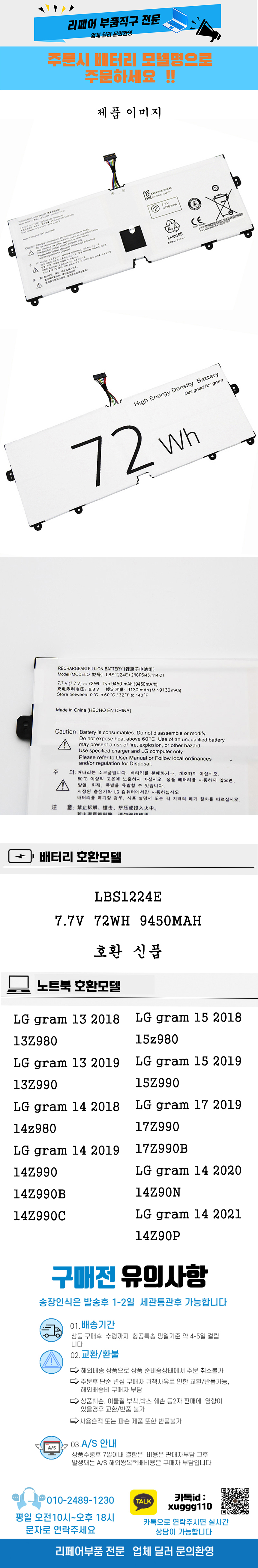 LG그램 17Z990 17ZD990 13Z980 13ZD980 노트북 배터리 LBS1224E 호환 배터리 당일출고 4-5일 배송