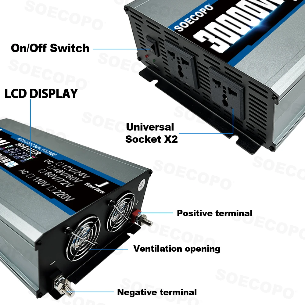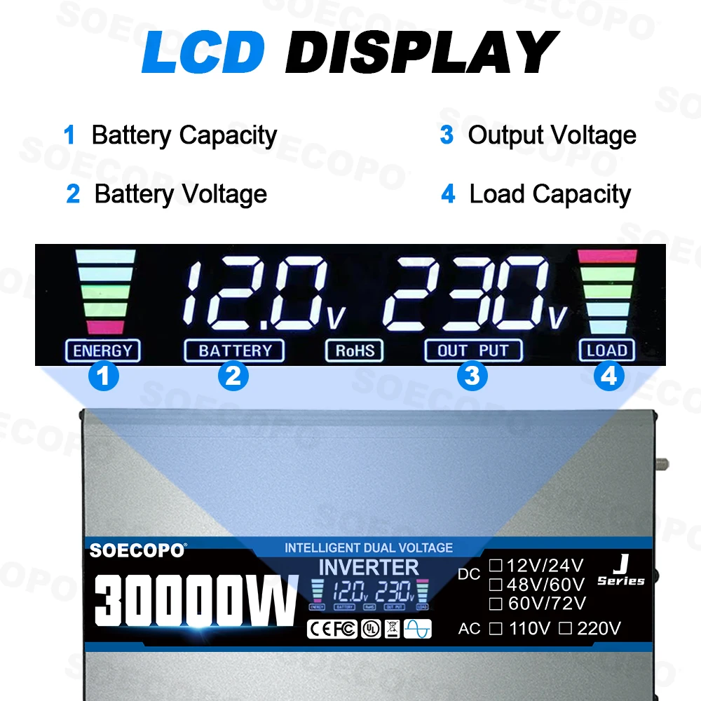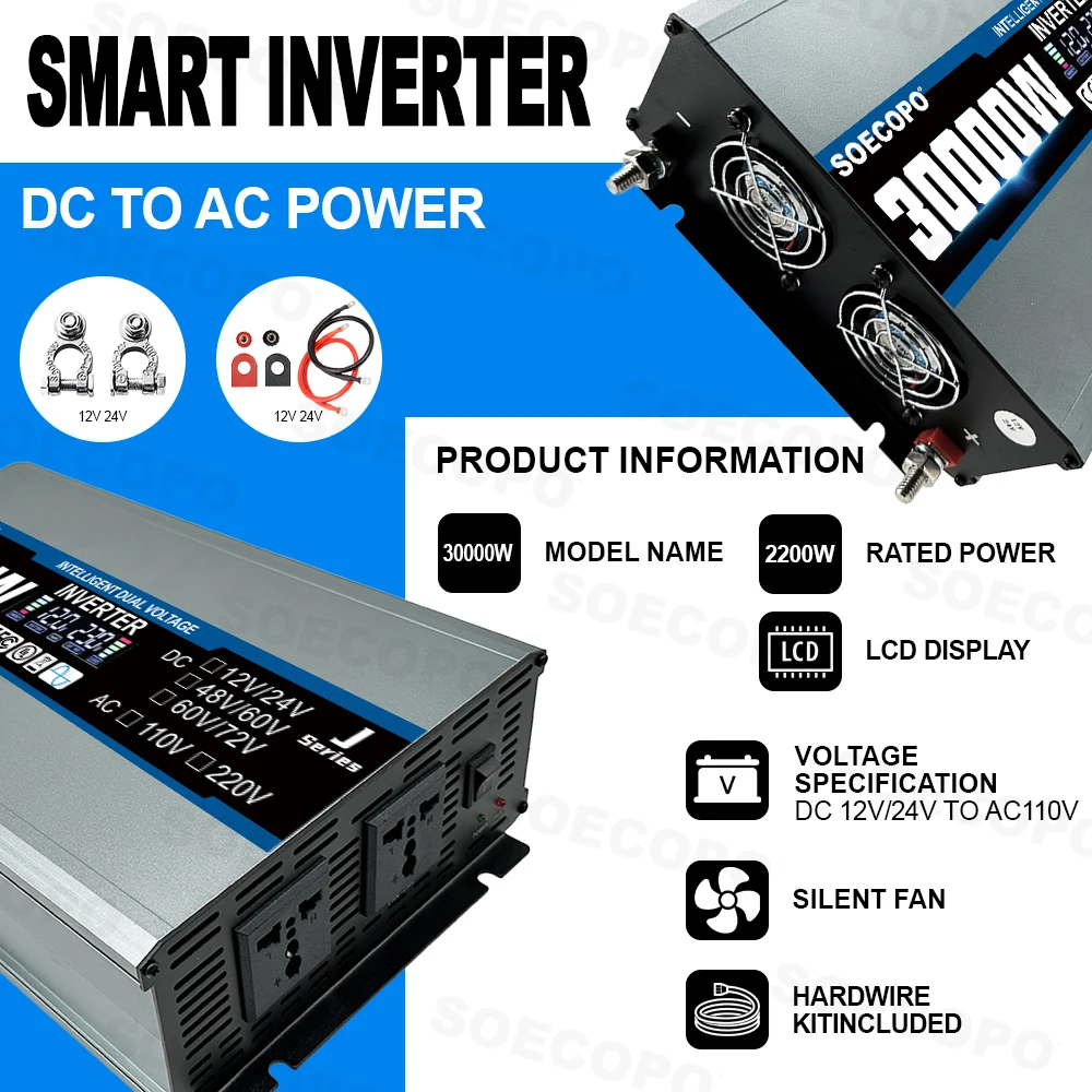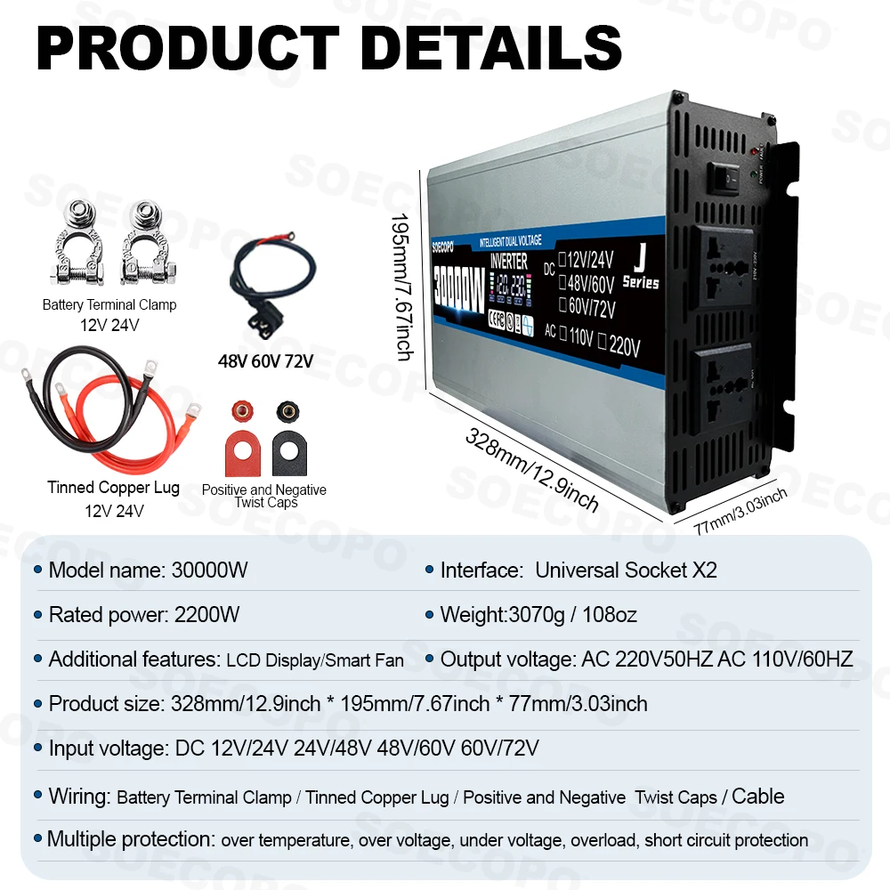 (30000W는 인버터의 피크 전력이며 총 부하는 2200W를 초과할 수 없습니다.)