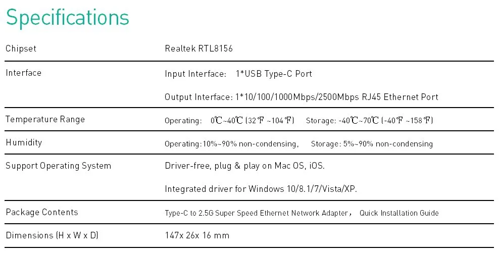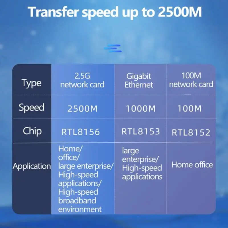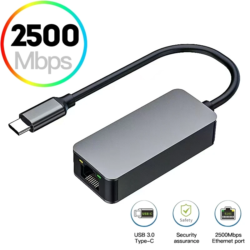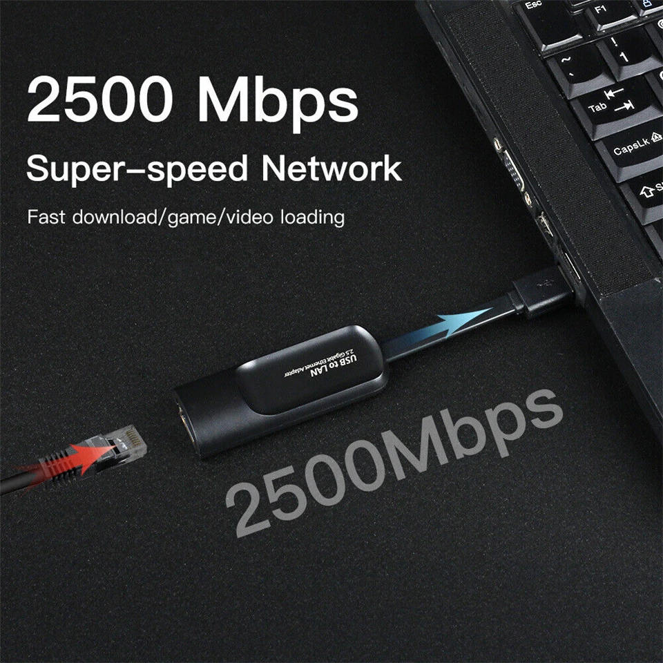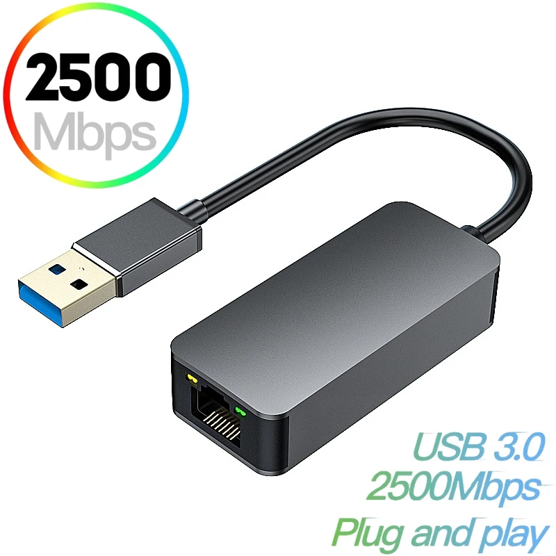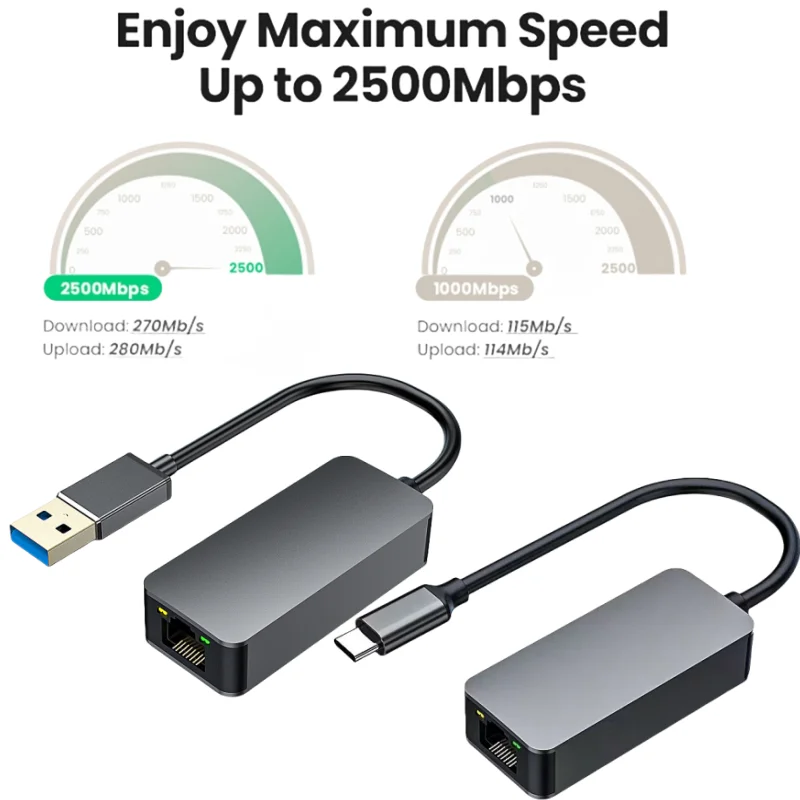 1. USB기가비트 이더넷 어댑터는 최대 2.5Gbps(2500Mbps)의 고속 광대역을 지원하며, 1Gbps 기가비트 이더넷보다 2.5배 빠르며 10/100/1000Mbps와 역호환됩니다.