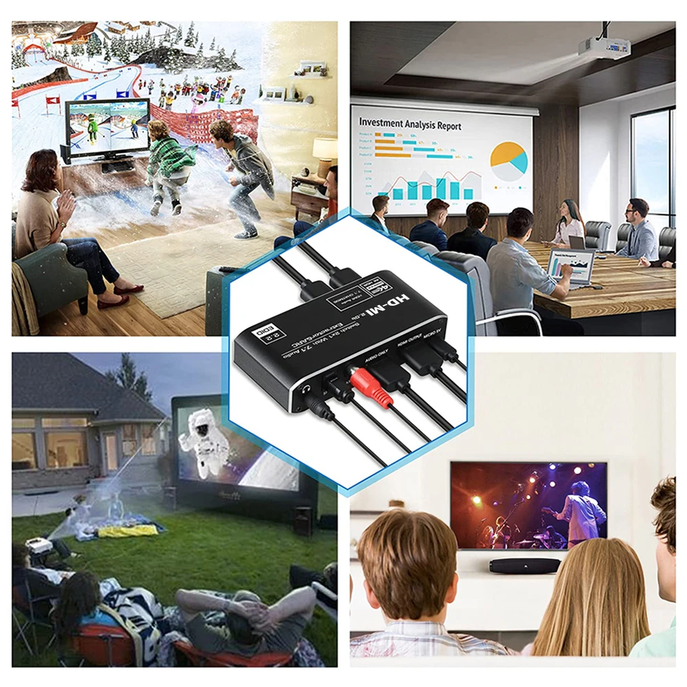 HDMI 호환 오디오 추출기 - 광학 TOSLINK SPDIF+동축+3.5mm+HDMI 호환 오디오 출력을 통해 HDMI 호환 입력 소스(예: PS5/4, xbox 호환용 호환용 one 등)에서 사운드를 추출할 수 있습니다.TV나 모니터에 연결하지 않고도 스피커나 앰프에 연결할 수 있습니다.