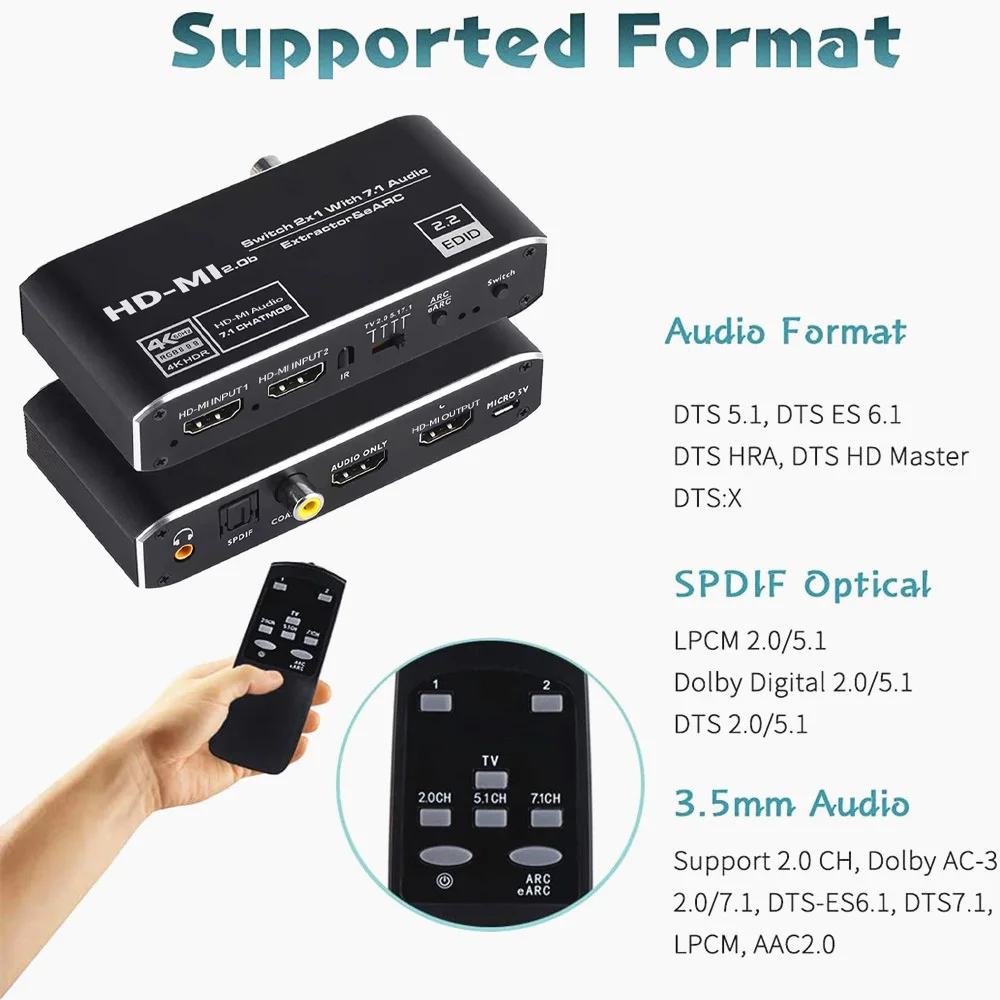 1 * HDMI 호환 스위치 eARC 오디오 추출기