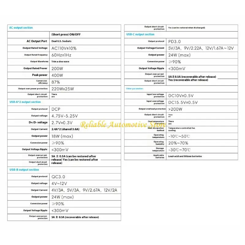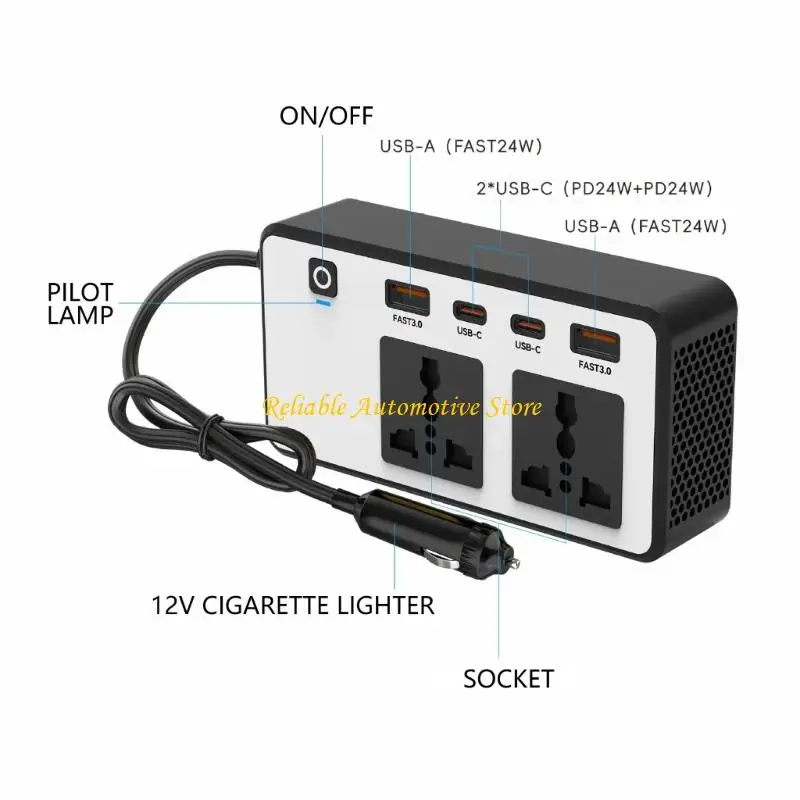200W 차량용 전력 인버터는 DC12V를 AC110V로 효율적으로 변환하며, 여러 장치를 동시에 빠르게 충전할 수 있는 이중 USB 포트와 콘센트를 갖추고 있어 도로 여행 및 차량 전력 요구 사항에 필수적인 도구입니다.