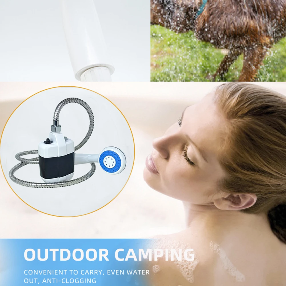 휴대용 전기 충전식 스프레이 캠프 샤워 헤드(1.5M 호스 포함) 야외 샤워 헤드 분무기 애완 동물 목욕용 다중 캠핑 스프레이 펌프 샤워 세차 서핑 및 보트 청소