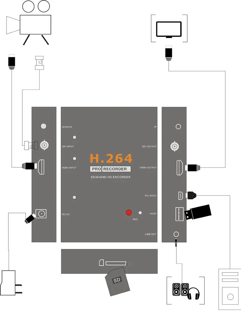 산업용 전문 애플리케이션을 위해 ezcap286 SDI HDMI 레코더에는 풍부한 인터페이스가 포함되어 있습니다.