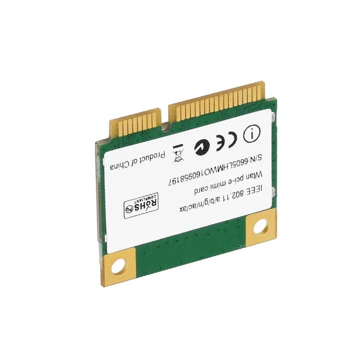Note: Light reflection and different displays may cause the color of the item in the picture A little different from the real thing. The measurement allowed error is +/- 13cm. This mini PCIE card is equipped with Bluetooth 5.3 and supports triband frequencies including 2.4GHz, 5GHz, and 6GHz, ensuring top speeds up to 2400Mbps on 6GHz and 5GHz, and 574Mbps on 2.4GHz when paired with an 802.11ax compatible router
