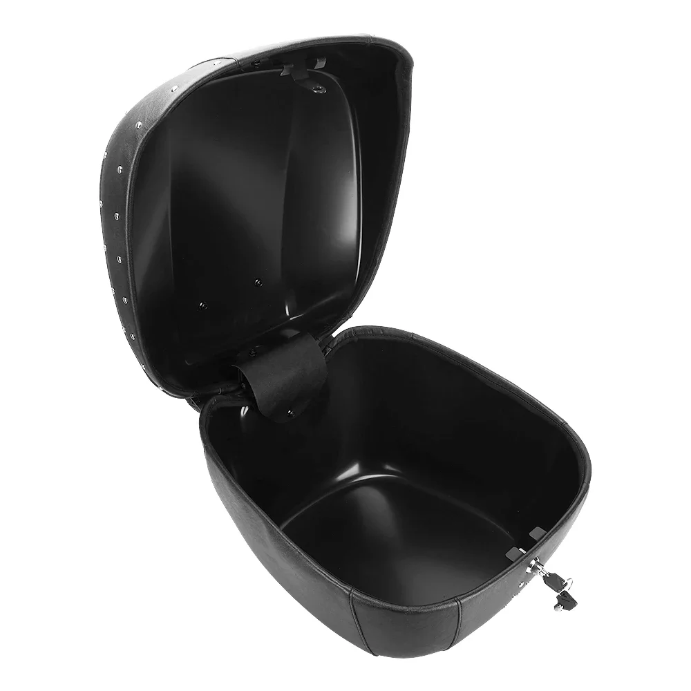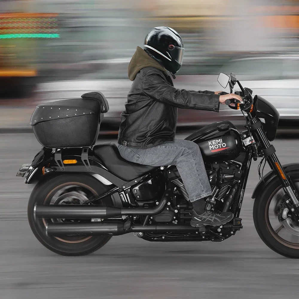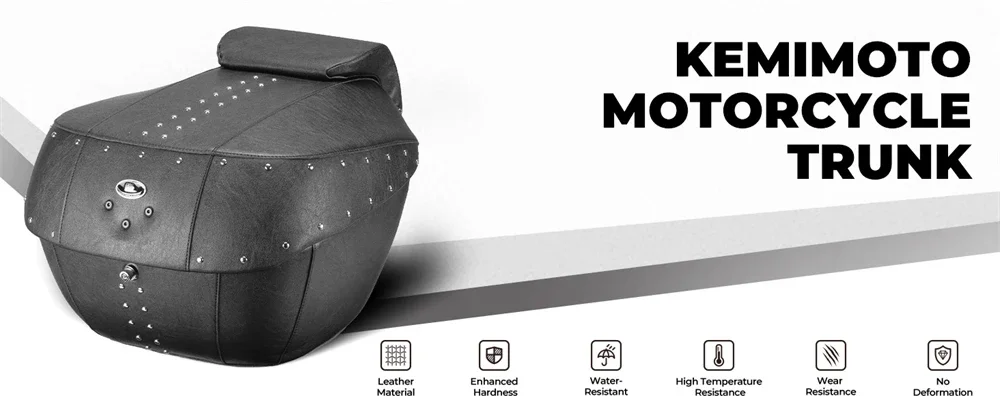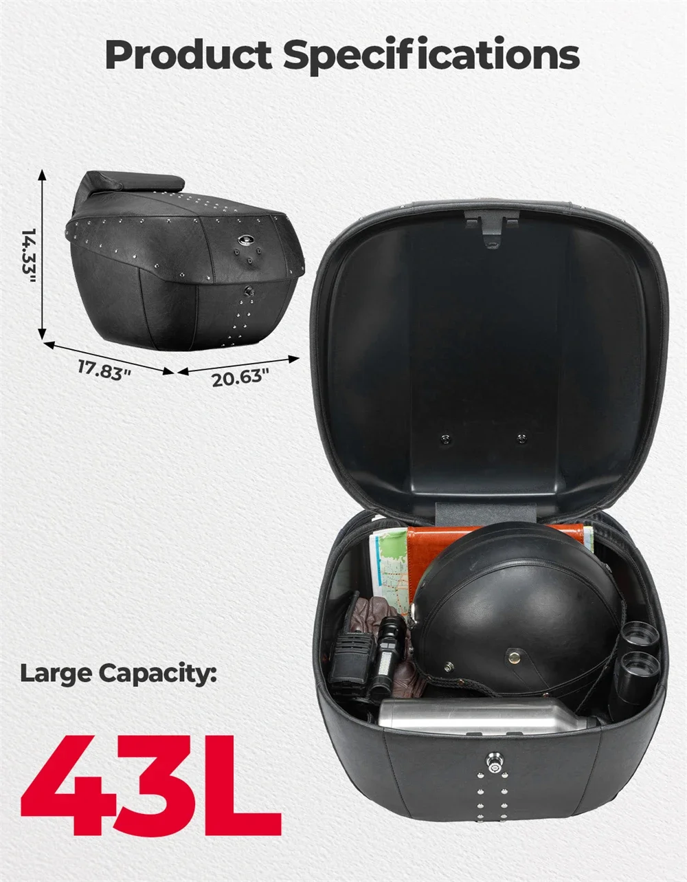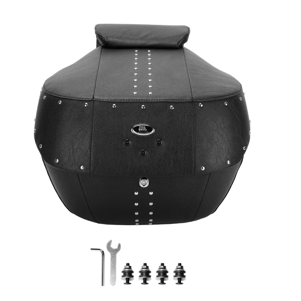 오토바이 테일 박스, 전체 PU 가죽이 포함된 43L 대용량 ABS 트렁크, 녹슬지 않는 리벳 및 정밀 잠금 장치, 크루저/투어링용 범용 핏, 방수 오토바이 수하물 가방
