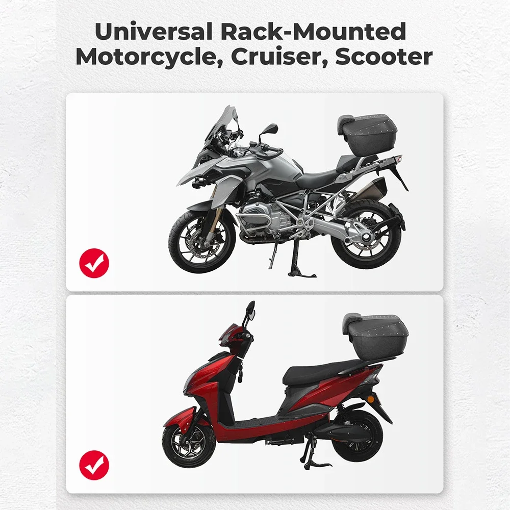 헬멧 2개 + 라이딩 장비(14.33×17.83×20.63in)에 적합 ? 슬림한 오토바이 테일 백 모양은 바람의 저항을 방지하고 모서리가 강화되어 자갈 충격을 견딜 수 있습니다.