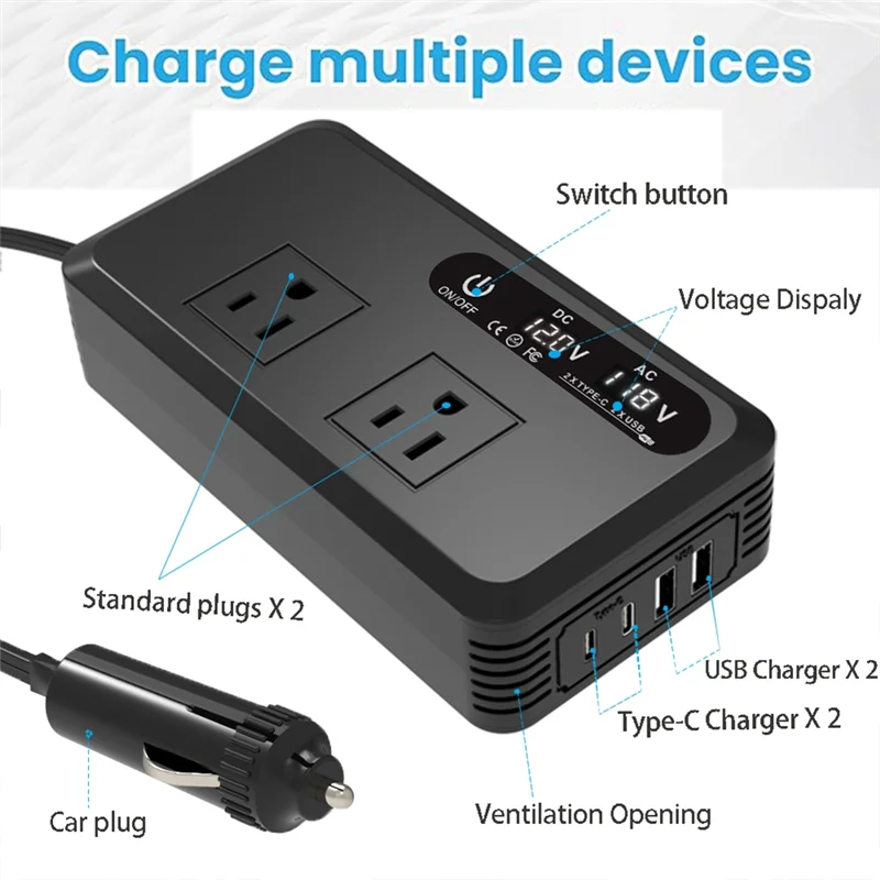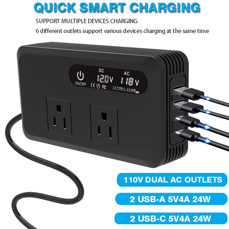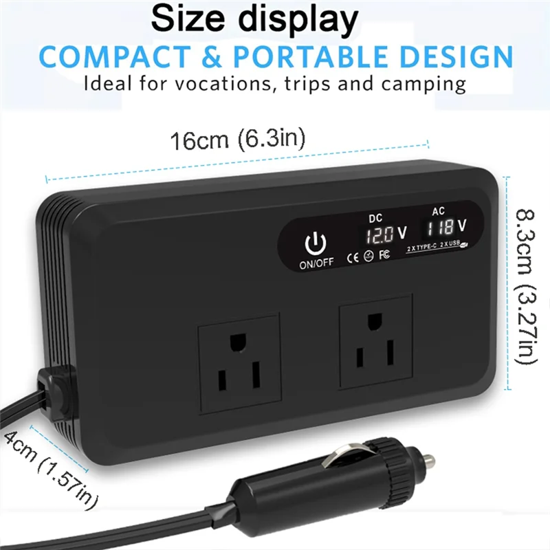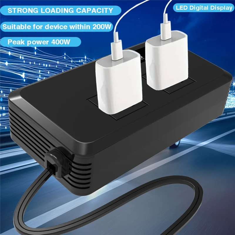 200W 차량용 인버터 DC 12V ~ 110V AC 인버터 충전기 어댑터(USB 포트 포함) 자동차 플러그 변환기 및 LED 스크린