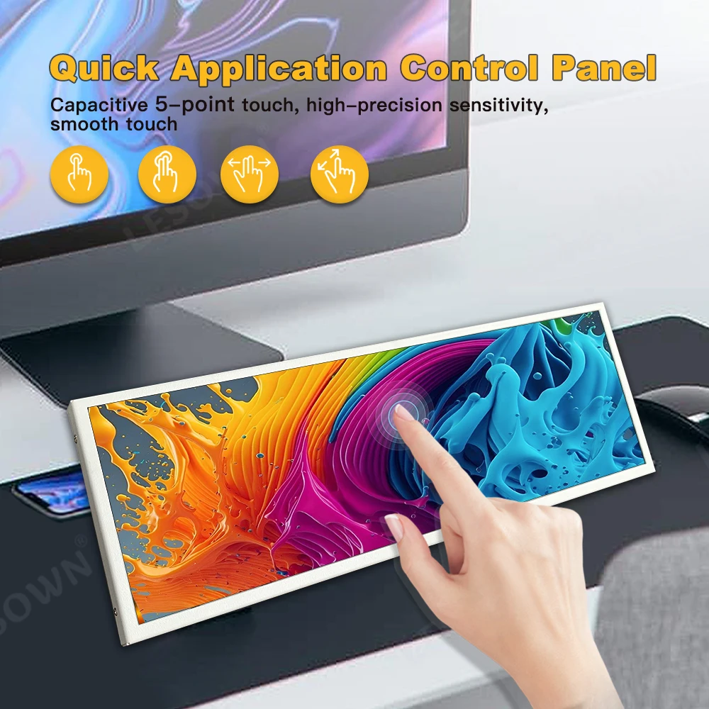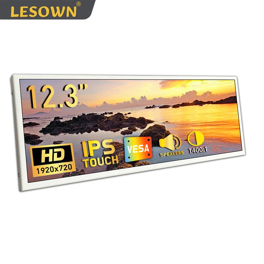 LESOWN 12 3 인치 스트립 터치 스크린 모니터 HDMI NTSC 노트북 IPS 80% 바 PC 호환용 C 1920x720 xbox USB
