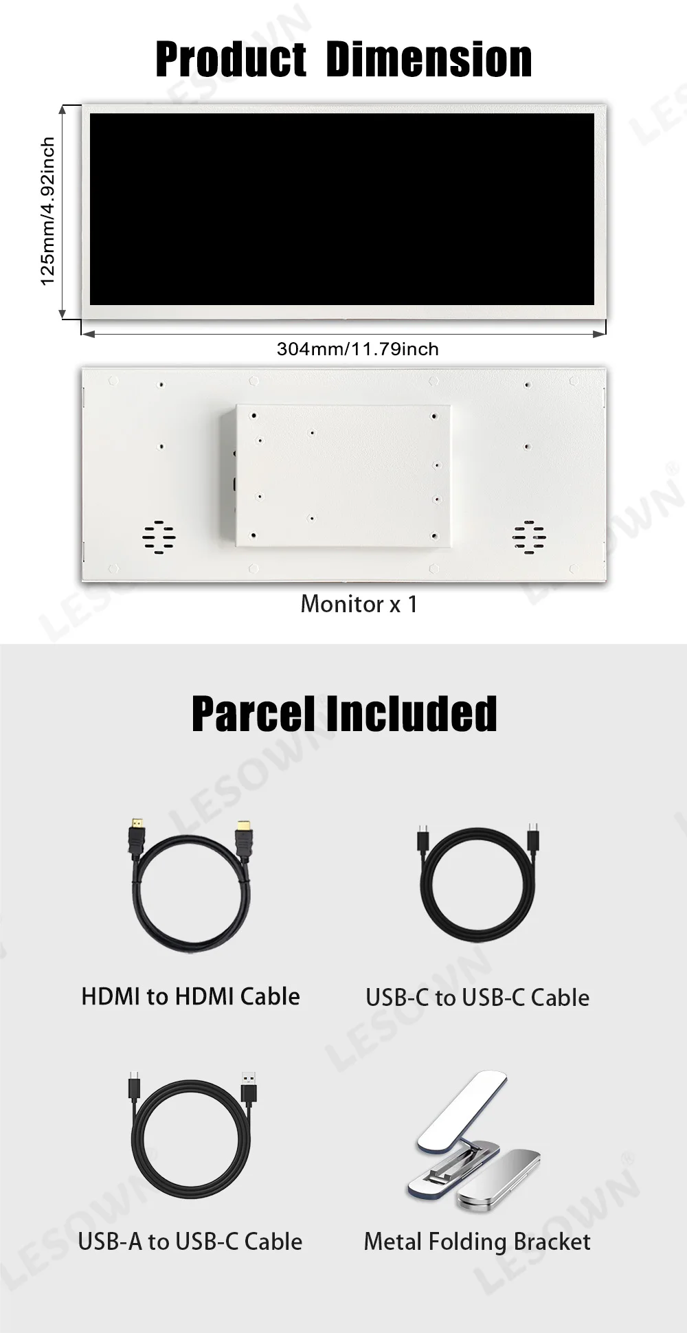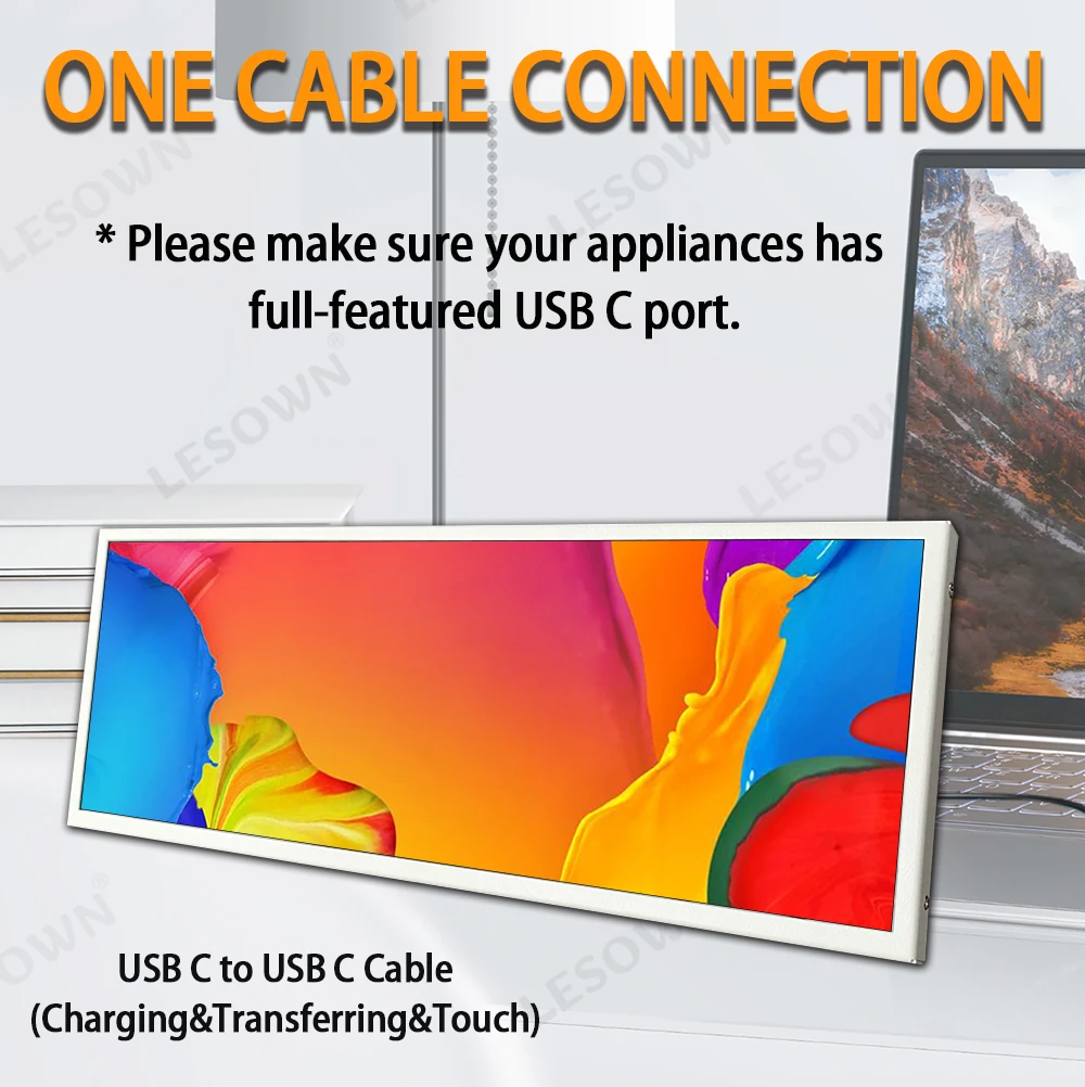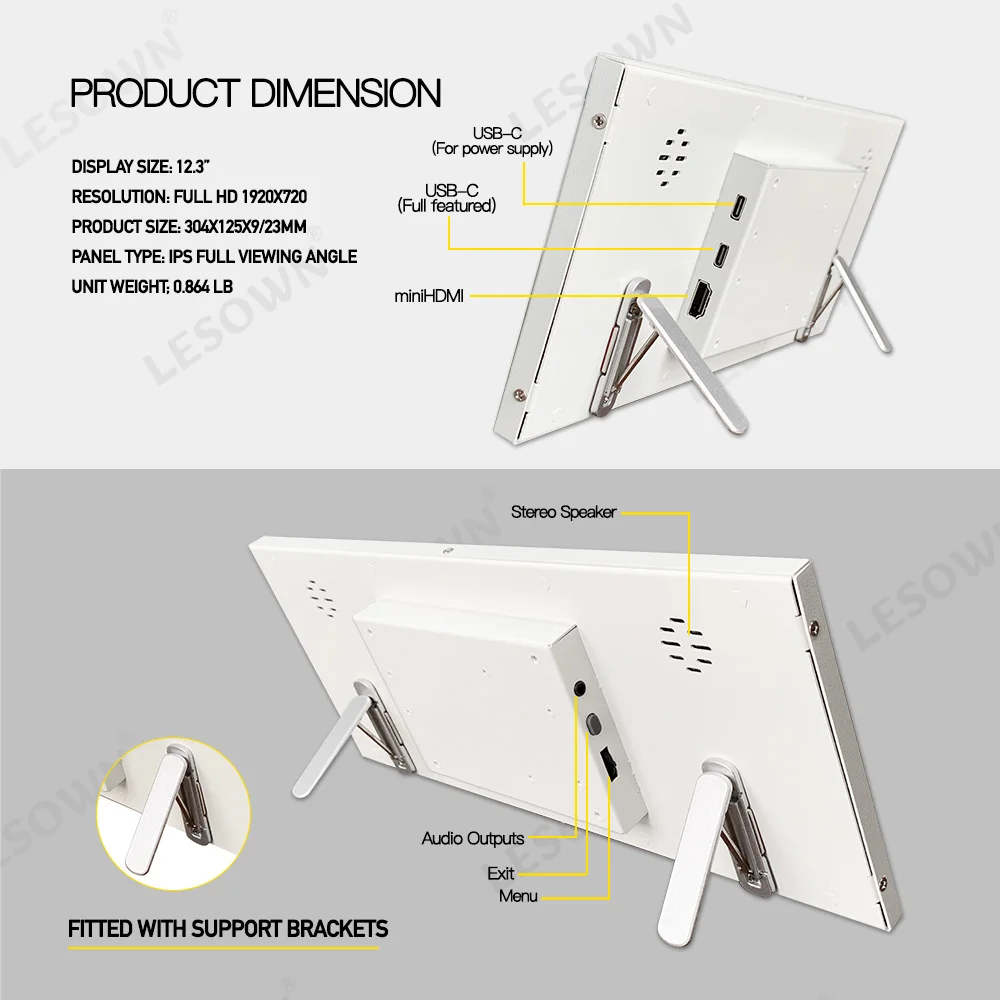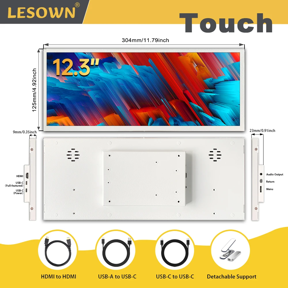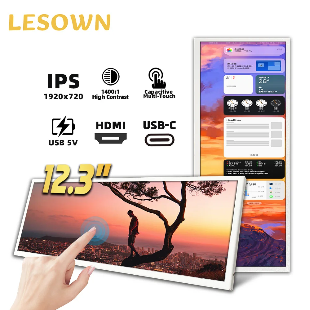 LESOWN 12 3 인치 흰색 IPS 터치 스크린 Windows 보조 PC USB HD 측면 HDMI 노트북 디스플레이 PS5 1920x72