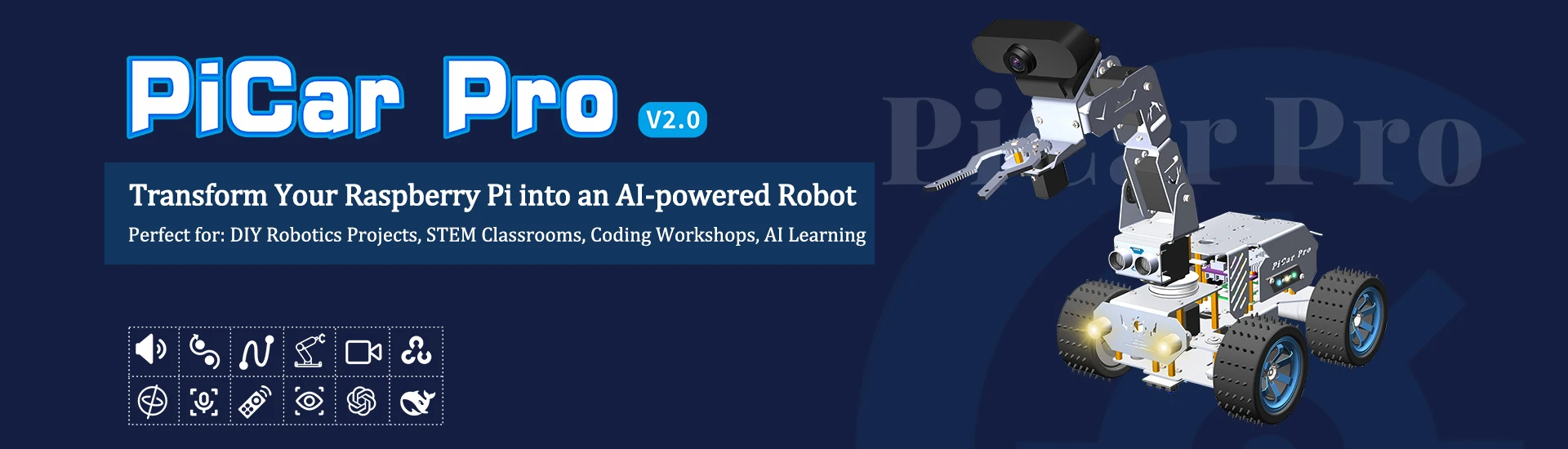 1.[DIY 조립 키트] AI 및 STEM 교육용으로 설계되었습니다.알루미늄 합금으로 제작되었습니다.Raspberry Pi 5/4B/3B/3B+(Raspberry Pi는 포함되지 않음)와 호환됩니다.중급 프로젝트(조립 시간 2~3시간).16세 이상에게 권장됩니다.