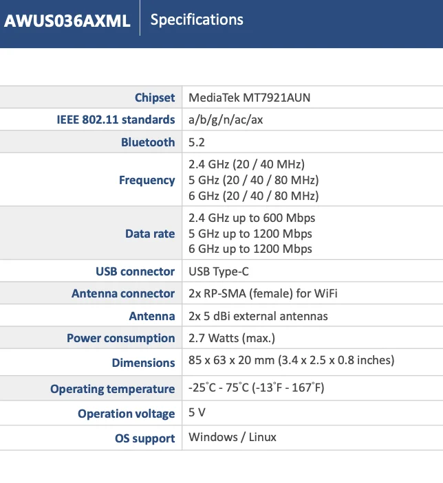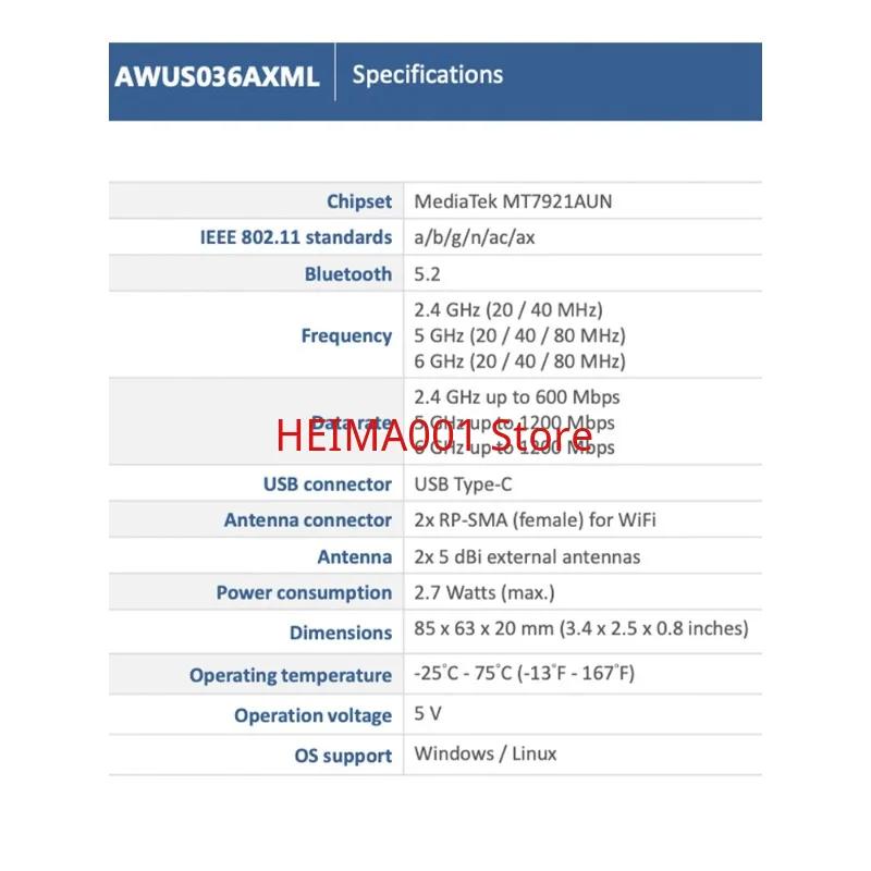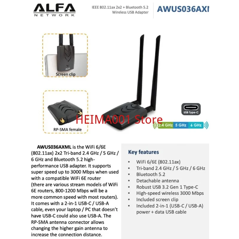 대만산 ALFA AWUS036AXML MT7921AUN 와이파이 6E 트라이 밴드 네트워크 카드 무선