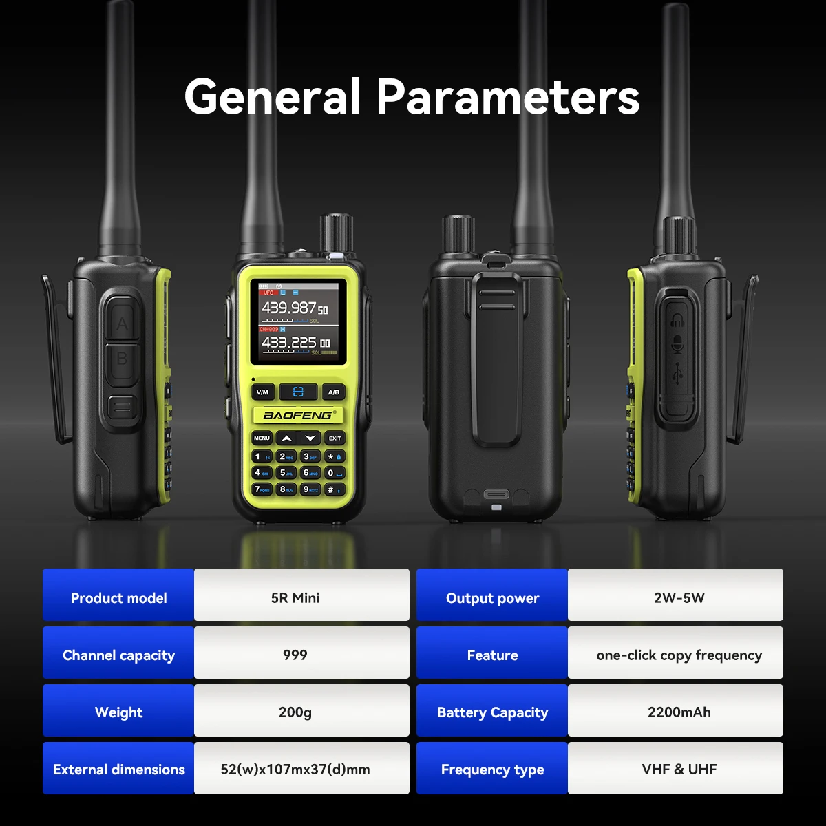 바오펑 UV5R 미니 무전기 멀티 밴드 AM FM 라디오 UV 블루투스 5W 프로그래밍 앱 5R