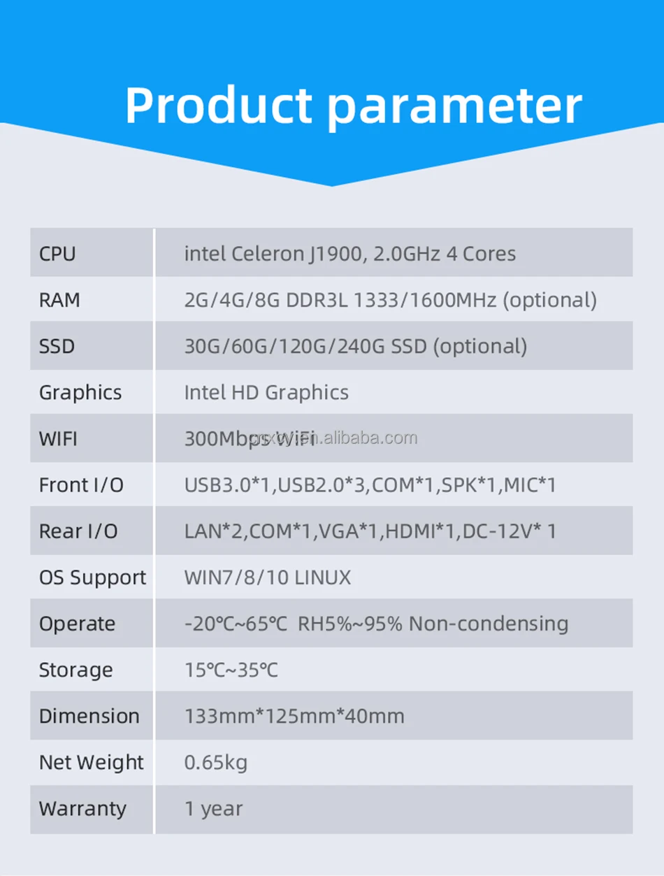 | Storage | Support MSATA + 2.5"inch SSD or HDD |