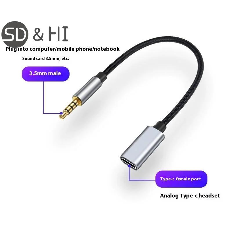 TYPEC 아날로그 플러그를 3.5mm 원형 헤드 싱글/더블 플러그로 변환