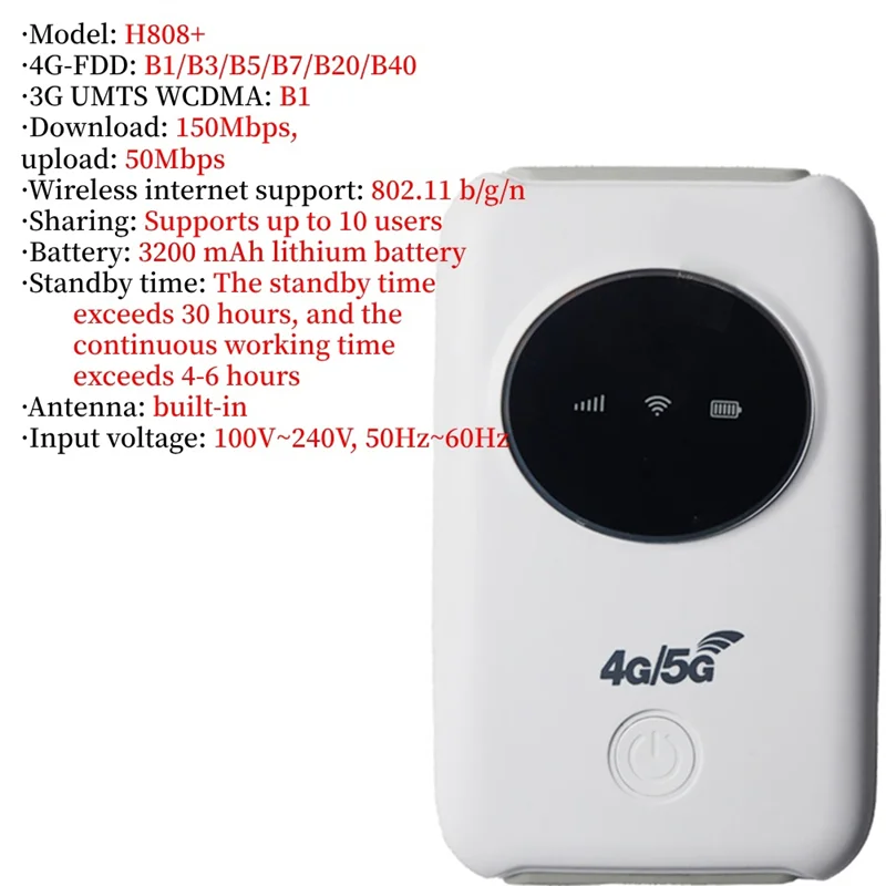 야외 여행을 위한 SIM 카드 슬롯 핫스팟이 있는 H808+ 포켓 모뎀 미니 라우터 4G Lte 150Mbps