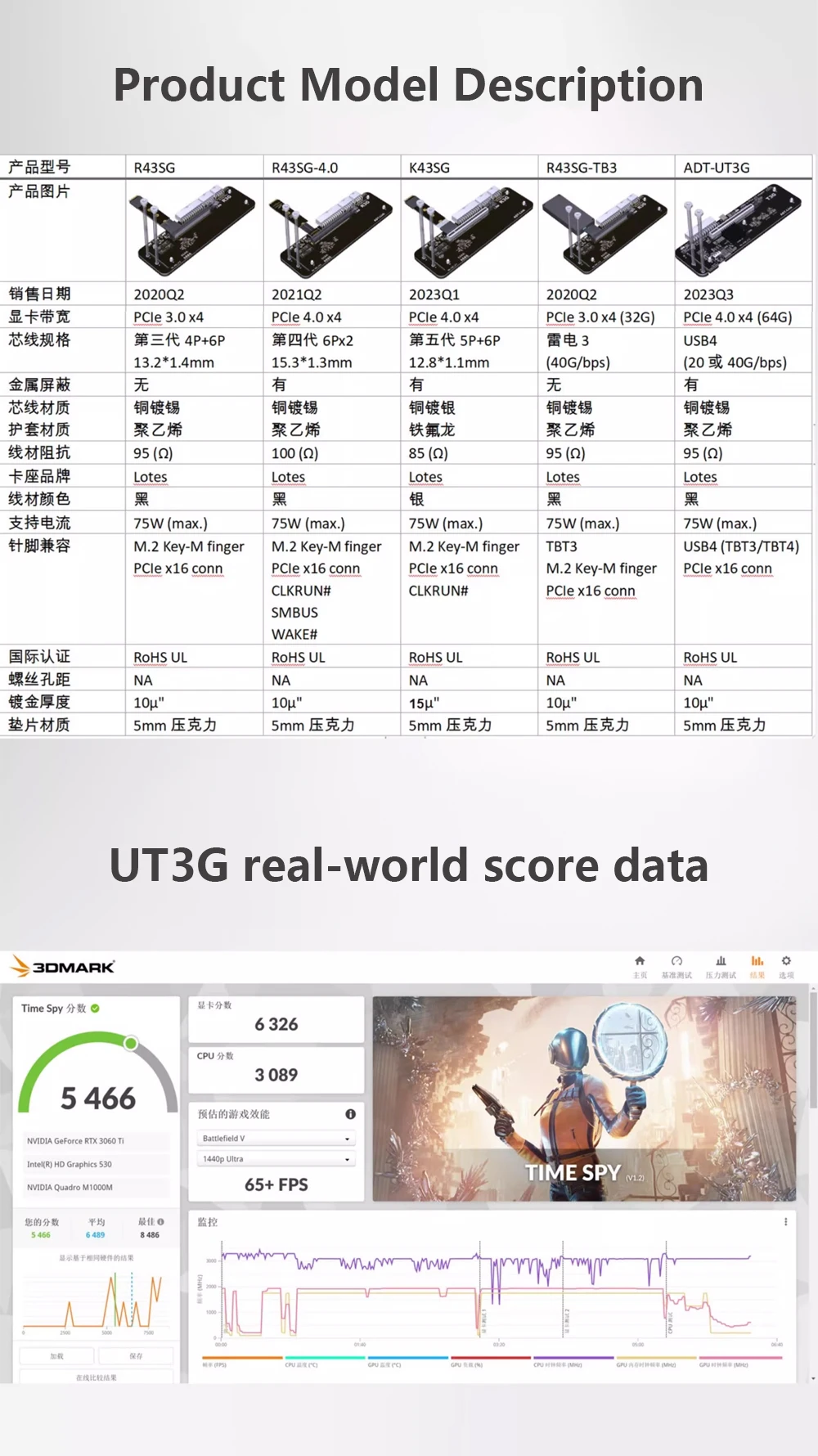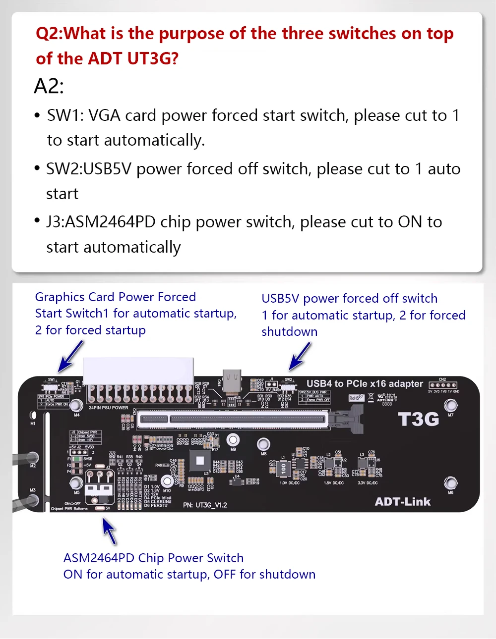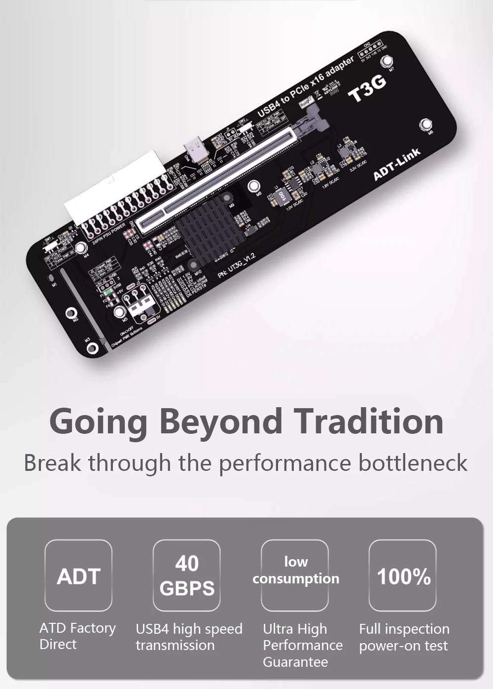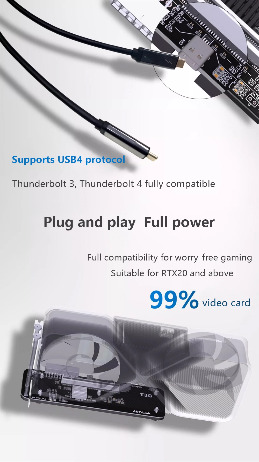 ADTLink UT3G 노트북 외부 카드 USB4PCIe 4.0 x16 eGPU 어댑터(Thunderbolt 3/4 NUC ITX STX 노트북 PC 게임용)