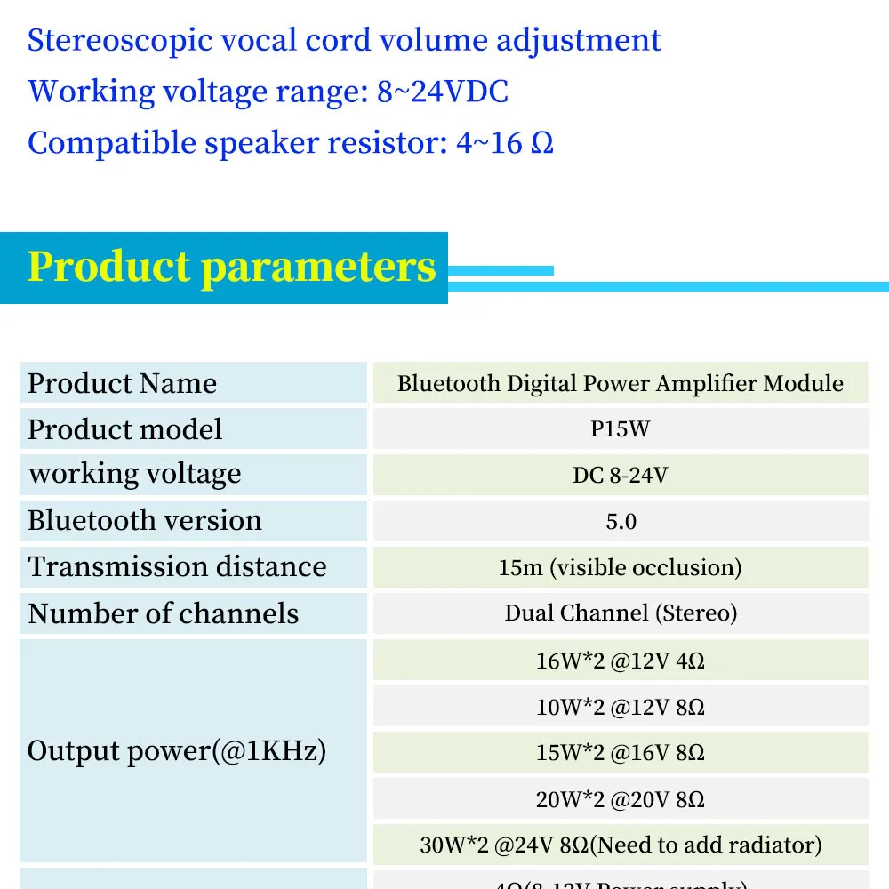 1/5/10PCS XYP15W 스테레오 블루투스 5 0 고전력 보드 증폭기 전력 모듈 디지털 10W/15W/20W DC12V/24V