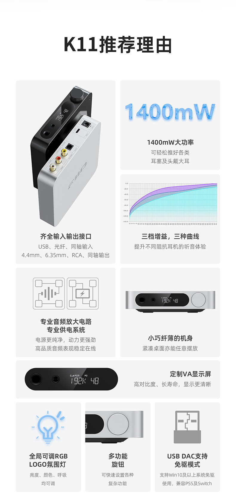 FiiO K11 디코딩 귀 증폭기 4.4 균형 컴퓨터 노트북 데스크탑 DSD 데스크탑 하이파이 디코더